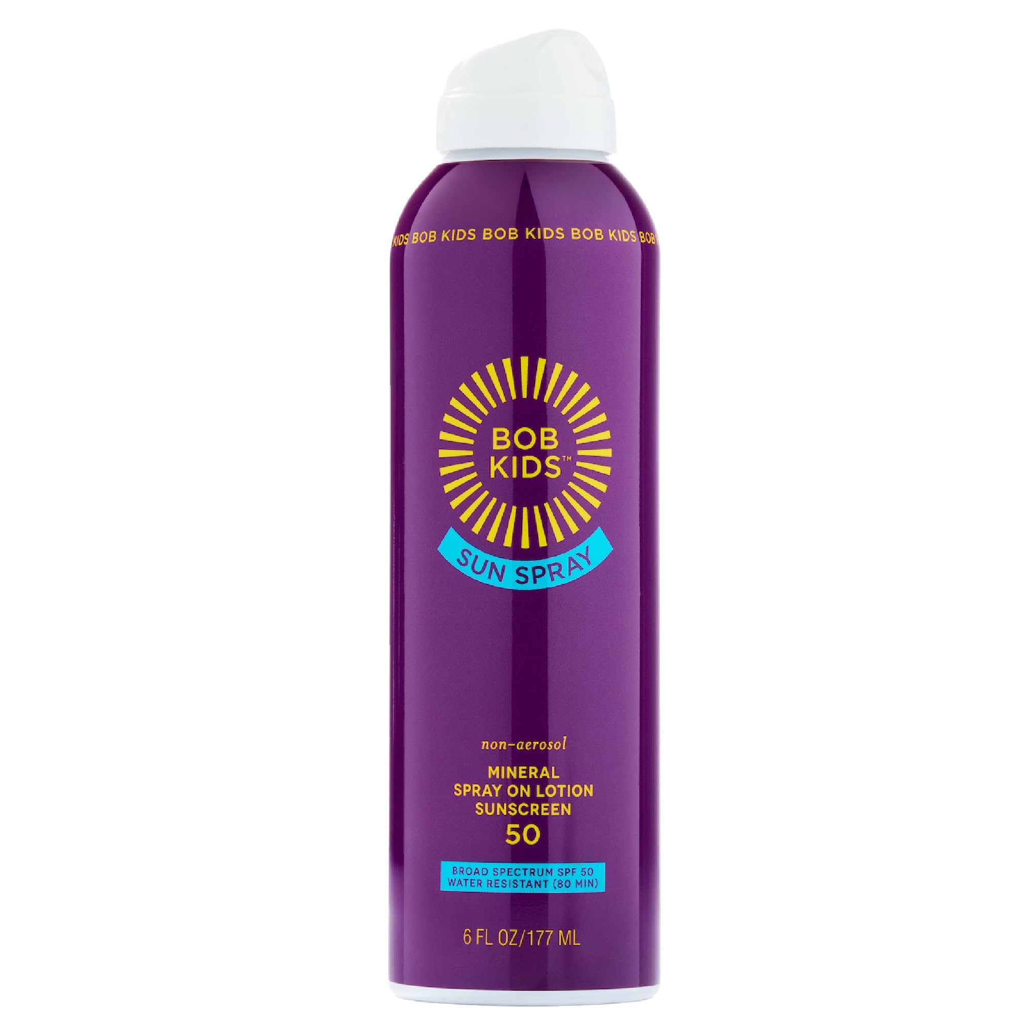 BOB KIDS SPF 50 Sun Spray Mineral Sunscreen Non Aerosol Continuous Spray Water Resistant Reef Friendly 6 oz
