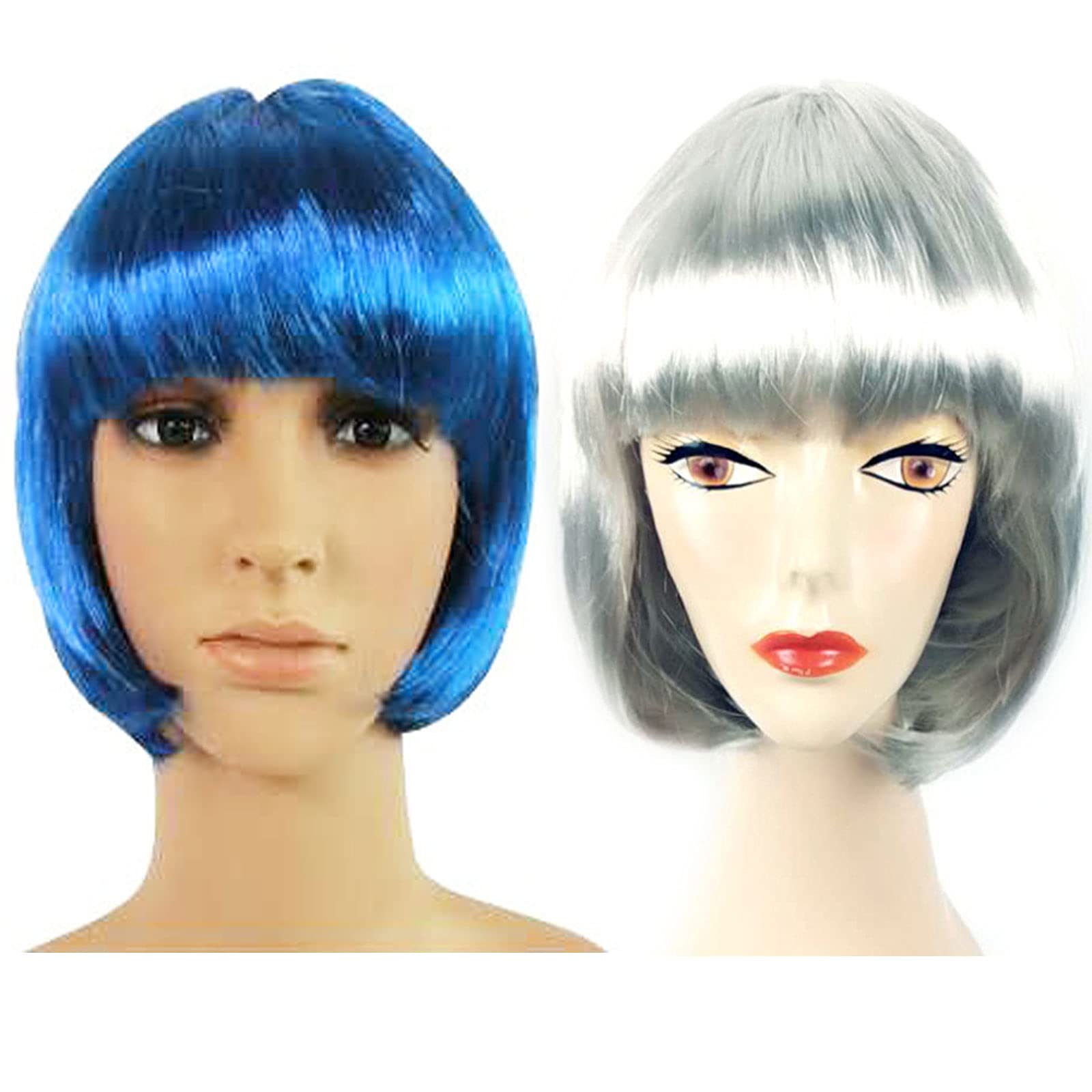 Characteristics: Fashionable accessories, unique colors and curly designs. The wig is individually packed for easy wearing and storing.A great gift for friends and family. Wigs do not cause irritation or skin allergies and make it more convenient and healthier thanks to the high-temperature sterilization. Suitable for most head types.It has breathable eyes inside and is pleasant to wear. Specification: Material: P material. Name: wig Color: blue, gray. Weight: 200 g. Style: short hair. Size: 55-65 cm. Scope of delivery: 1 x blue bob wig. 1 x gray bob wig.performances, Halloween, concerts, costume parties, anime performances, themed parties, weddings, appointments, Christmas or just for fun.Fashionable and comfortable: The wig looks natural, real, beautiful, super soft and thick enough.Very stylish, natural look and soft hand feeling.Pleasant to carry: natural appearance and soft feeling, good texture, strong and durable style, feel and move like real hair.It does not harm your own hair and can help you to look more radiant and confident.Material: The wig cover consists of heat -resistant synthetic fiber, which can be lured, colored, cut or manufactured according to your own style.Merkmale: Modische Accessoires, einzigartige Farben und lockige Designs. Die Perücke ist einzeln verpackt für einfaches Tragen und Aufbewahren. Ein tolles Geschenk für Freunde und Familie. Perücken verursachen keine Irritationen oder Hautallergien und machen es dank der Hochtemperatur-Sterilisation bequemer und gesünder. Geeignet für die meisten Kopftypen. Es hat atmungsaktive Augen innen und ist angenehm zu tragen. Spezifikation: Material: P-Material. Name: Perücke Farbe: Blau, Grau. Gewicht: 200 g. Stil: kurzes Haar. Größe: 55-65 cm. Lieferumfang: 1 x blaue Bob-Perücke. 1 x graue Bob-Perücke.Aufführungen, Halloween, Konzerte, Kostümpartys, Anime-Performances, Themenpartys, Hochzeiten, Verabredungen, Weihnachten oder einfach nur zum Spaß. Modisch und bequem: Die Perücke sieht natürlich, echt, schön, super weich und dick genug. Sehr stilvoll, natürlicher Look und weiches Handgefühl. Angenehm zu tragen: natürliches Aussehen und weiches Gefühl, gute Textur, starker und langlebiger Stil, fühlen sich an und bewegen sich wie Echthaar. Es schadet Ihrem eigenen Haar nicht und kann Ihnen helfen, strahlender und selbstbewusster auszusehen. Material: Die Perückenabdeckung besteht aus hitzebeständiger Kunstfaser, die nach Ihrem eigenen Stil gelockt, gefärbt, geschnitten oder hergestellt werden kann.Bob Perücke 55 65cm 2 Stücke Perücke Kurze Bob Perücken Damen Perücken Kurze Perücke Studenten Perücke Hitzebeständig Blau Grau für Damen Natürliche Kunsthaarperücke Kurzes Haar mit Flachem Pony