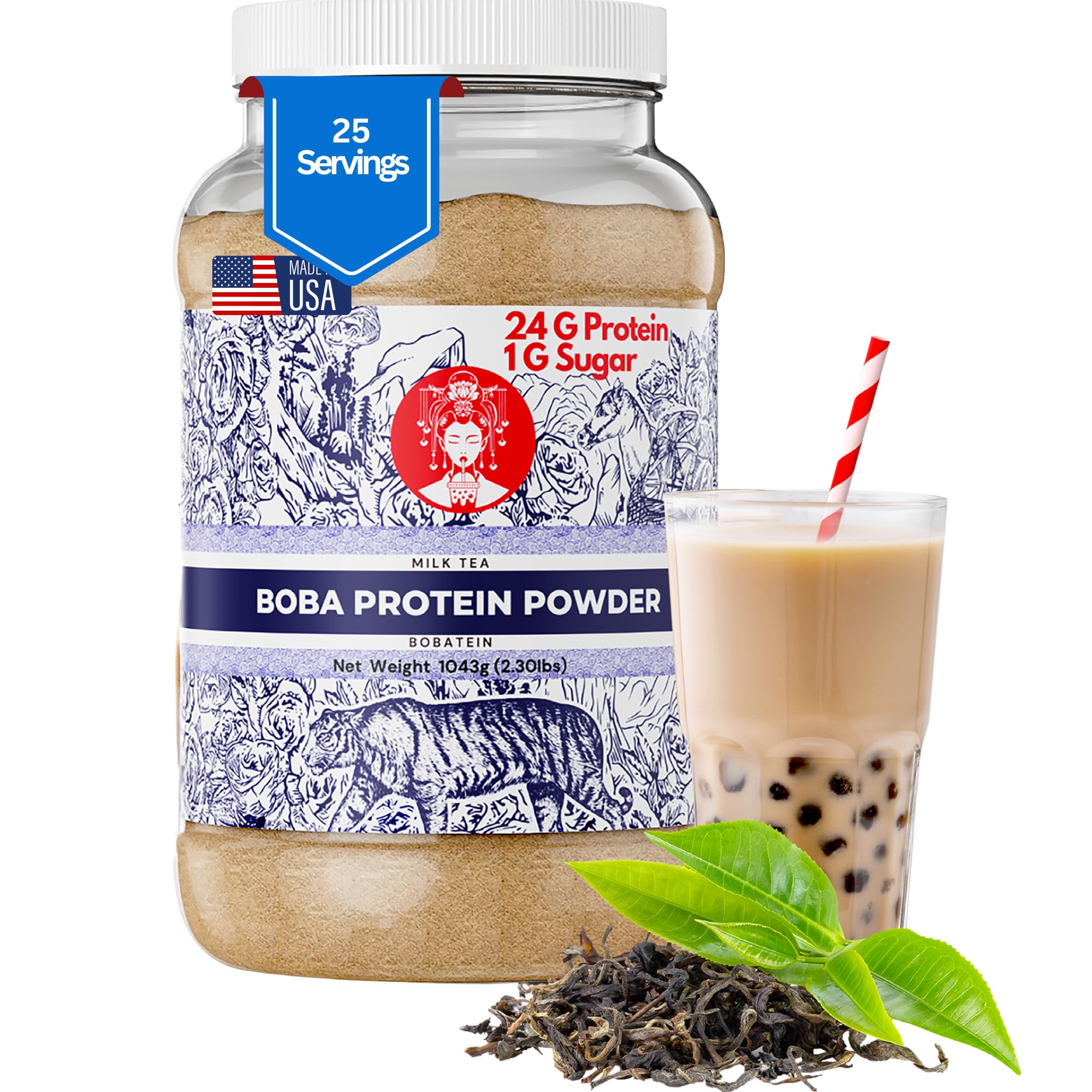 Convenient Easy to Mix: Smooth, easy-to-dissolve formula that can be added to shakes, smoothies, or even baked goods, making it a versatile addition to your daily routine. Ideal for Post-Workout Nutrition: Quickly replenishes muscles with high-quality protein after intense exercise, helping you recover faster and reach your fitness goals. Delicious Boba Milk Tea Flavor: Enjoy the unique, creamy sweetness of boba black milk tea in every serving, blending the taste of your favorite drink with the benefits of protein. 1g of Sugar: Perfect for those mindful of sugar intake, offering a low-sugar option without compromising on taste or performance. 24g of High-Quality Boba Tea Protein: Supports muscle growth, repair, and recovery after workouts, with a clean, fast-digesting source of protein to fuel your fitness goals.