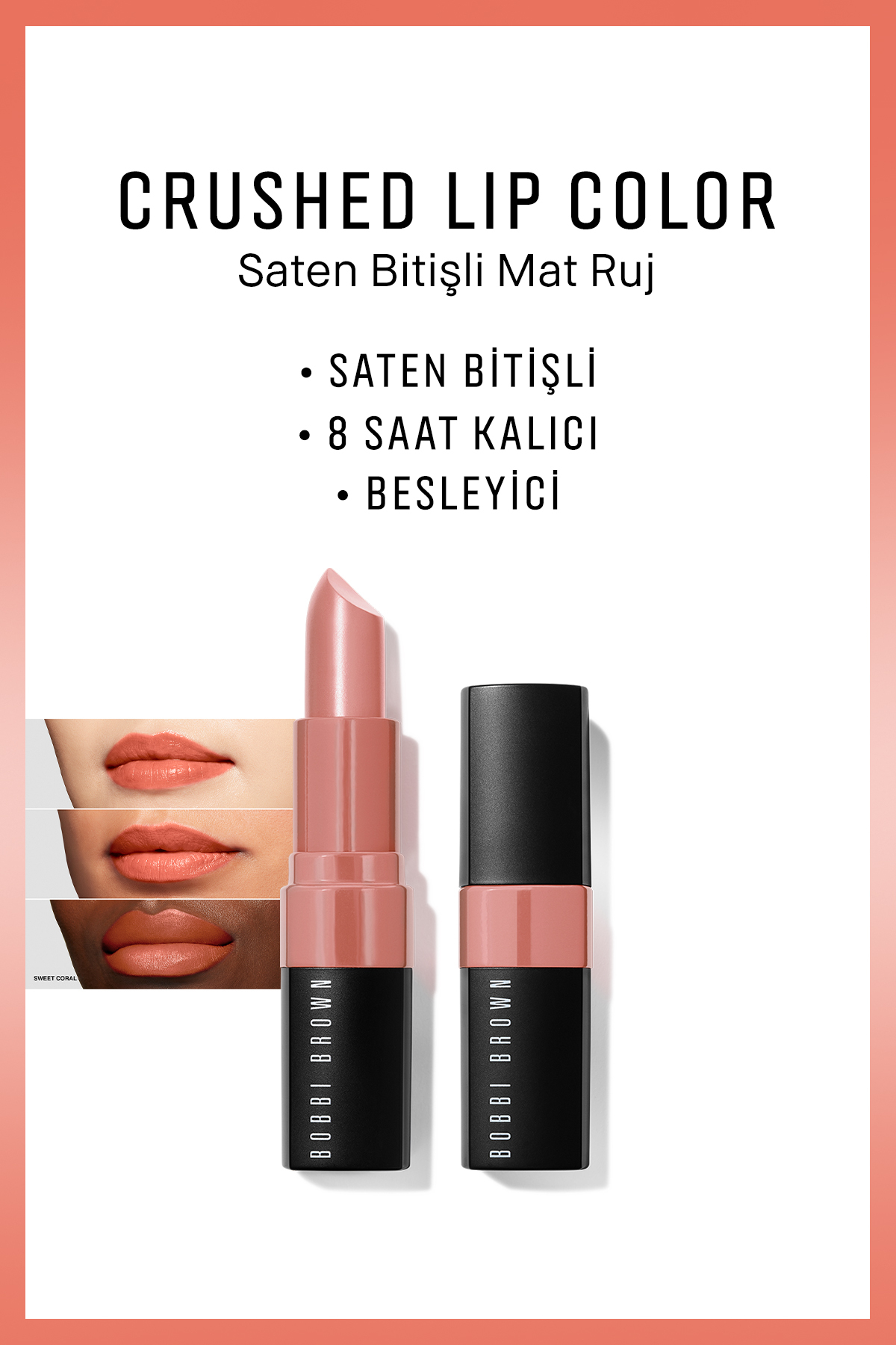 Bobbi Brown Crushed Lip Color Satin Finish Matte Lipstick - Sweet Coral 716170283258