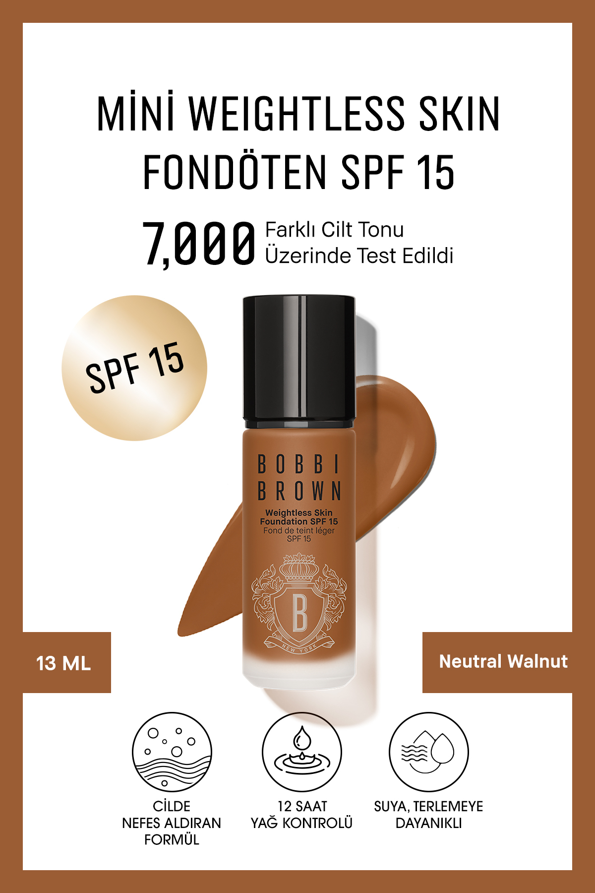 Bobbi Brown Mini Weightless Skin Foundation SPF15 - Natural and Matte Finish - Neutral Walnut -13ml(Travel Size)