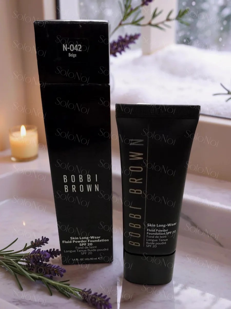 Bobbi Brown Skin Long-Wear Fluid Powder Foundation SPF 20, Beige, No. 042. This liquid powder foundation creates a comfortable, matte finish. The lightweight formula with the Power Protein complex gives skin a healthy look, smoothes its texture, resists sweat, and controls shine, maintaining color saturation all day long. Special filters protect the skin from aggressive environmental factors, blue light, and UV radiation. Combines the benefits of a liquid foundation, which creates a smooth, even coverage, and a powder, which provides long-lasting coverage and controls sebum production. This foundation helps protect the skin from UV rays, blue light, and other negative environmental impacts. It controls excess sebum secretion, preventing clogged pores and breakouts; it is non-acne-producing.