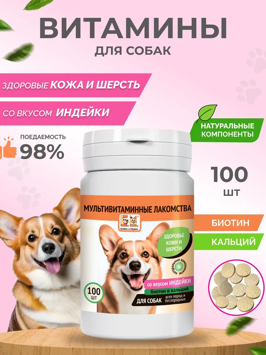 Бобик и Мурка Витамины для собак Здоровье Кожи и Шерсти Индейка 100 шт