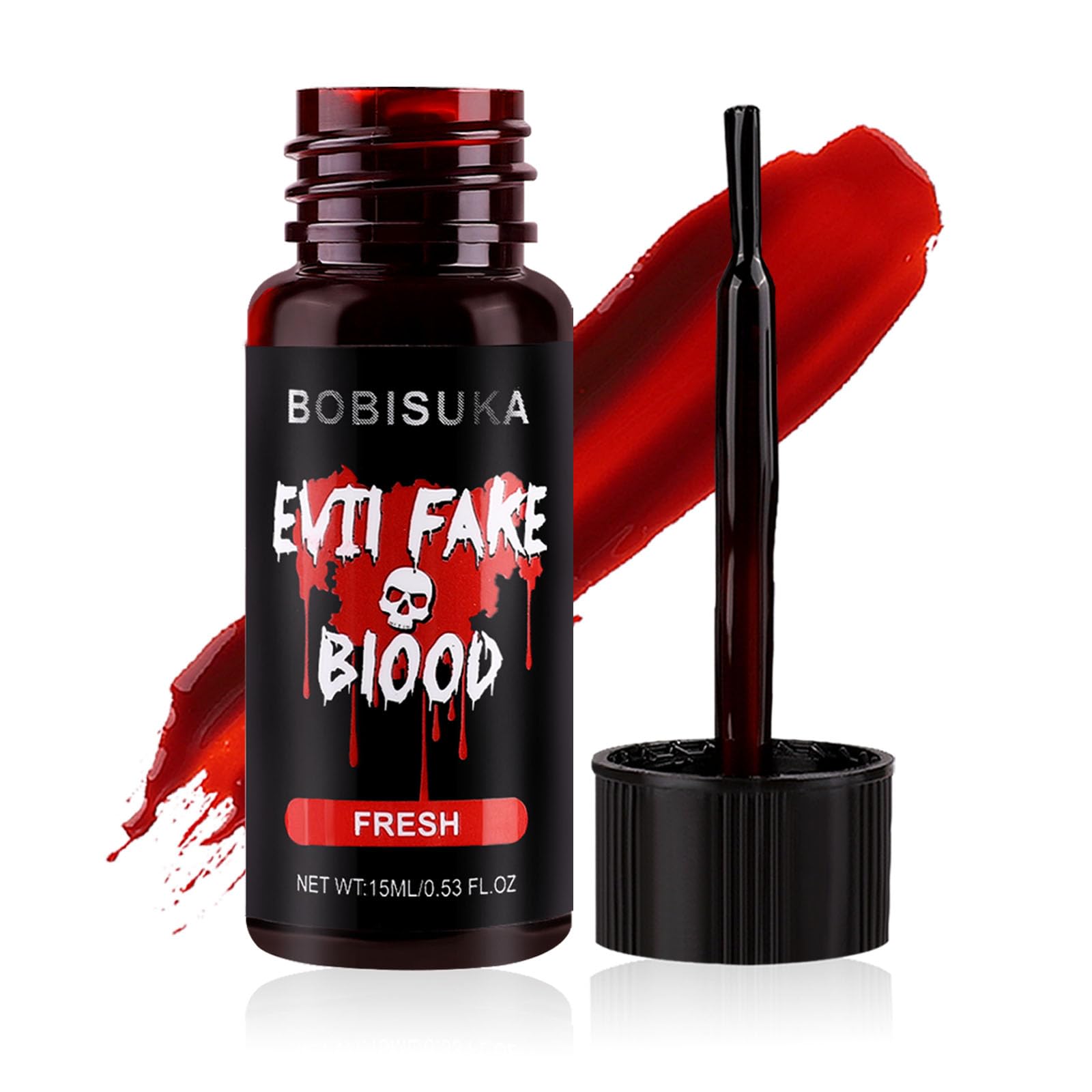 ?Non-Toxic, Skin Safe for Children & Adults?BOBISUKA fake blood is crafted with syrup-based ingredients, safe for use in and around the mouth, but swallowing is not recommended. It stays gentle on skin, suitable for all skin types and cause no irritation. However, as everyone’s skin is different, we’d recommend a small skin patch test on ear back or back of hands before application on delicate skin area. Importantly, Avoid contact with eyes. ?Easy to Apply & Easy to Wash Off?BOBISUKA sticky fake blood comes in a portable 15ml pocket-sized bottle, with an attached applicator brush in the lid for easier & precise application. Apply directly onto wherever you want with the attached brush or use Q-tips and detail brush to create gory blood FX effects. Easily wash off the blood makeup with soap and warm water. If slight stains remains, massaging the soap in circulations will help clean thoroughly. ?Please be aware that product may stain clothes.?. ?Halloween Realistic Fake Blood for Gory SFX Makeup?BOBISUKA syrup-based fake blood is perfect for enhancing any Halloween gory special FX makeup looks, such as classic vampire makeup, fierce werewolf makeup, bloody zombie makeup, demonic makeup, evil clown/Joker makeup, horrifying skeleton/ghost/ghoul makeup or any other spooky themed character makeup. Ideal for cosplay, costume, horror themed parties, haunted house, film, stage & theatre. ?Skin-Friendly & Versatile Fake Blood?BOBISUKA edible & washable stage blood is an ideal fake blood when you want to have a convincing fresh blood effect - just like the injuries just occur. It can be used on face, body, props or clothes for Halloween special effects makeup or daily pranking. You can use it to create abrasions, scrapes, broken nose, scabs, scratches or trickling blood drool, slit throat FX. Moreover, combine with scar wax, liquid latex or 3D gel to create zombie rotting flesh, cuts, gashes, bites, slit wrist wounds or any broken skin FX. ?BOBISUKA Syrup-Based Fake Blood Makeup?This BOBISUKA fake blood is a Stage Blood available in 3 realistic blood tones: fresh, dark, old. They’re syrup-based with a thick & gooey consistency, delivers a shiny wet and authentic fresh blood look. It never dries, and may drip slowly under skin temperature, but if the surroundings temperature is low and getting cold, this makeup blood will become more congealed, similar to coagulated blood or scab blood, it may not move in this situation, that means it’ll stay where you apply it on.