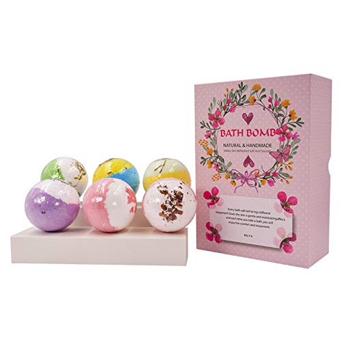 BoBoHome Gift Set of 6 Organic Bath Bombs with Natural Vegan Essential Oils Sparkling Spa to Hydrate Dry Skin