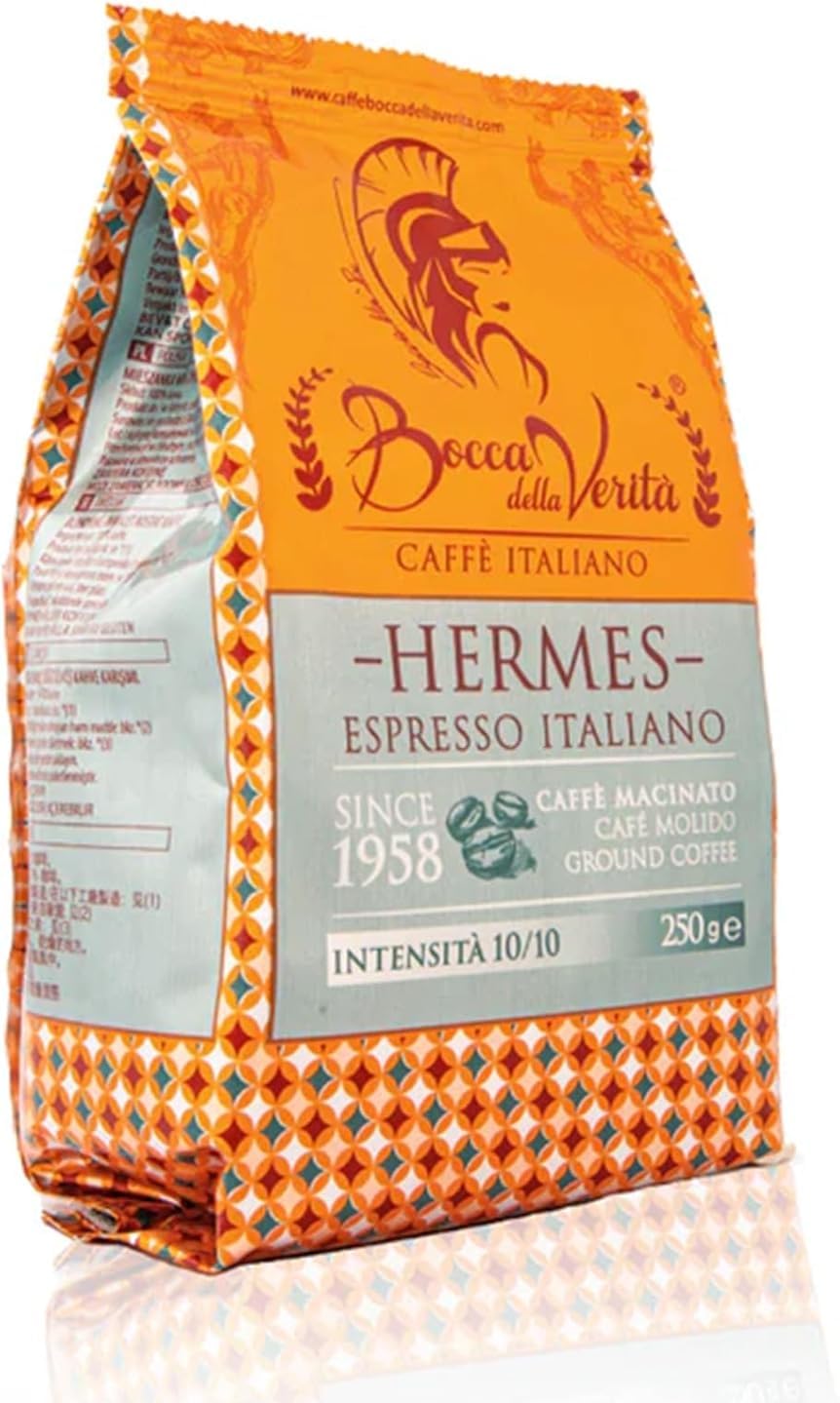 [STORAGE] The coffee is stored in a recyclable cardboard box that protects it with a protective atmosphere. store it in a clean, cool, and dry place, away from heat. If you have any questions about storage or anything else related to your espresso ground coffee, we are available 24 7. [RAINFOREST UTZ CERTIFIED] Bocca della Verità ground espresso coffee, thanks to Rainforest UTZ certification, guarantees fair socio-economic conditions for producers and workers, respecting human rights. We adhere to the specific characteristics of the coffee during the production phase: only natural fertilizers are used, without pesticides, and harvesting from seed is carried out using traditional methods. [ITALIAN COFFEE] We are a dynamic and inclusive company, immersed in the culture of high-quality coffee since our inception. We closely follow the evolution of the coffee world to offer our customers an original product rooted in Roman Italian tradition and culture. With our Italian espresso, enjoy an ancient, historic process steeped in Italian culture in the modern world. You're not just buying coffee you're buying a piece of history and art. [SENSORY PROFILE] This sought-after blend of ground espresso is strong, intense, and full-bodied! It contains mild Arabica beans with a pleasant, delicate bitterness and an aromatic acidity. Robusta beans, on the other hand, contribute a strong, full-bodied flavor and allow for a creamier espresso. The result is a flavor with great fruity nuances and balanced acidity. We are committed to producing an environmentally friendly and sustainable espresso without compromising on the best flavor. ? [HIGH QUALITY] Bocca della Verità offers a very high-quality product: HERMES ristretto ground coffee, 250g, artisanal. Our ground espresso coffee is made with a special selection of Robusta beans (80 ), which provide exceptional strength, and Arabica beans (20 ). It is processed using traditional methods, with a natural roast and no additives to preserve the coffee's flavor. The balance between the Robusta and Arabica varieties creates espresso, the king of coffees.[CONSERVATION] Le café est conservé dans une boîte en carton recyclable qui le protège grâce à une atmosphère protectrice. Conservez-le dans un endroit propre, frais et sec, loin de la chaleur. En cas de doute sur la méthode de conservation ou autre du café moulu à expresso, nous sommes disponibles 24 heures sur 24 et 7 jours sur 7. [CERTIFICÉ RAINFOREST UTZ] Le café espresso moulu Bocca della Verità, grâce à la certification Rainforest Utz, permet de garantir toutes les conditions socio-économiques des producteurs et des travailleurs, dans le respect des droits humains. Nous respectons les caractéristiques pendant la phase de production du café : seuls les engrais naturels sont utilisés sans utilisation de pesticides et la récolte avec semis est effectuée selon les méthodes traditionnelles. [CAFÉ ITALIEN] Nous sommes une entreprise dynamique et inclusive, plongée dès ses origines dans la culture de café de haute qualité. Nous suivons de près l'évolution du monde du café pour offrir à nos clients un produit original lié à la tradition et la culture romaine italienne. Grâce à notre café espresso italien, profitez aujourd'hui d'un processus ancien, historique et chargé d'italianité dans le monde moderne. Vous n'achetez pas simplement un café, vous achetez un morceau d'histoire et d'art. [PROFIL SENSORIEL] Ce mélange recherché de café expresso moulu est fort, intense et corsé ! Il contient l'Arabica doux, avec une touche amère agréable et délicate et une note acide et aromatique. La Robusta, quant à elle, confère un goût fort et corsé et permet de préparer un espresso plus crémeux. Une saveur avec de grandes nuances fruitées et une acidité équilibrée. Nous nous engageons à obtenir un expresso café écologique et durable sans renoncer à la meilleure saveur. ?[HAUTE QUALITÉ] Bocca della Verità offre un produit de très haute qualité : le café moulu 250g HERMES ristretto et artisanal. Notre café moulu pour espresso est fabriqué avec une sélection spéciale de grains de robusta (80 ), qui confèrent une grande robustesse, et d'arabica (20 ). Il est traité de manière traditionnelle, avec une torréfaction naturelle sans additifs pour préserver le goût du café. L'équilibre entre les variétés Robusta et Arabica donne vie au café expresso, le roi du café.BOCCA DELLA VERITA - Café moulu italien HERMES Ristretto Napoli 10A 90R en sachet de 250 grammes avec valve de protection