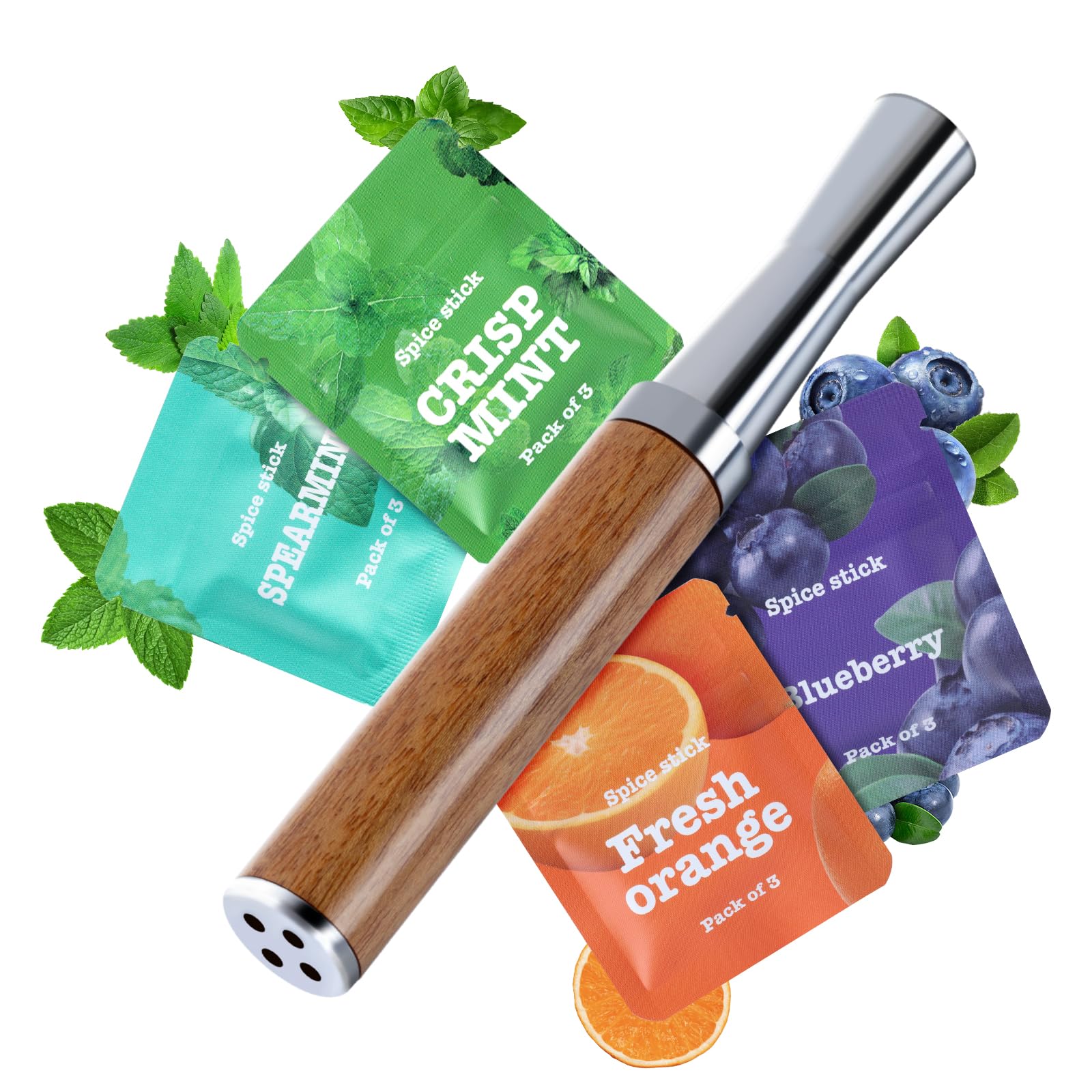 Boderi Quit Inhaler Aluminum Wooden Upgraded with 4 Packs Mint Spearmint Orange Blueberry Flavored Cotton Cores Break Up Bad Habits