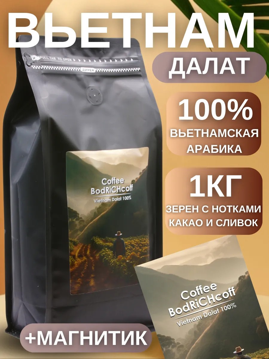 BodRiCHcoff Кофе зерновой Vietnam Dalat и магнит, комплект, 1 кг