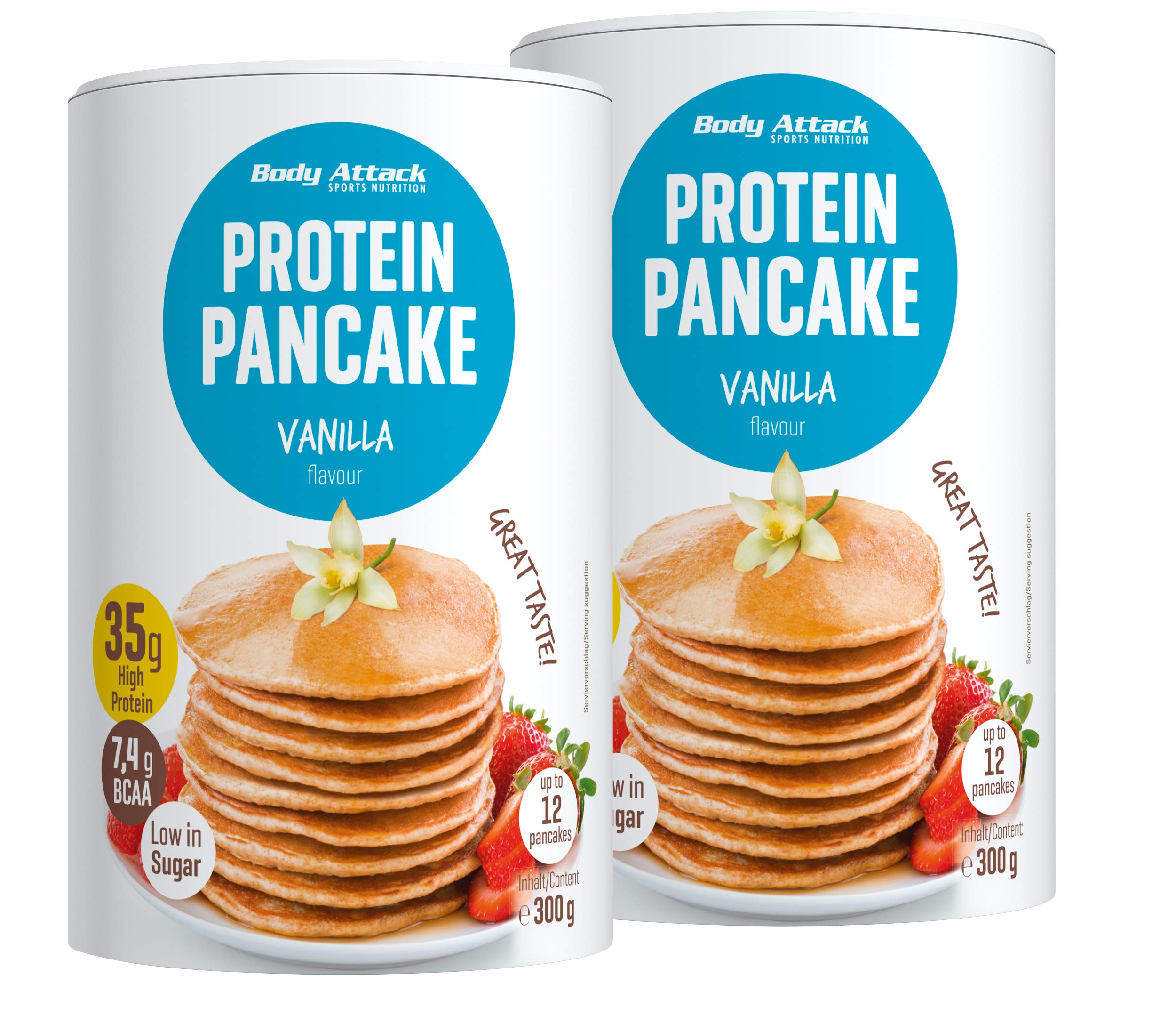 Body Attack Protein Pancake Mix-Vanilla 2x300g protein pancakes with 35% protein baking mix with little sugar & fat low for fluffy-delicious pancakes in 5 minutes-rich for 24 protein pancakes vanilla 300 g (2-pack)
