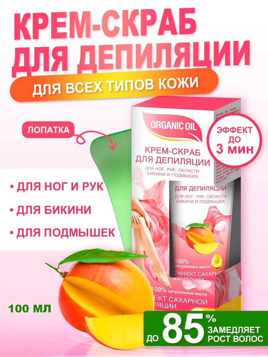 Fito депилятор ORGANIC OIL – это настоящее спасение для современной женщины. Средство для удаления волос на теле в форме крема деликатно разрушает стержень волоса, обеспечивая эффект сахарной депиляции. Тюбик мазь с текстурой как паста содержит 100% натуральные масла кокоса и манго, которые делают кожу бархатистой и гладкой как шелк, как после шугаринга. В набор входит лопатка скребок, с её помощью вы можете быстро и аккуратно удалить волосы на ногах, руках, в интимной зоне, но не дальше области бикини и подмышках. Этот женский депилятор прекрасно подходит для всех типов кожи, предотвращая раздражение, которое бывает после бритья станком. Уникальная формула крем депилятора уничтожает весь стержень волоса и останавливает их рост до 85%. Благодаря скрабу на основе фитоэкстрактов у вас будут гладкие ножки уже через 3 минуты после применения средства. Также не стоит забывать, что он способен удалять не только женский, но и мужской волос на теле. Попробуйте фито депилятор прямо сейчас и наслаждайтесь результатом! Перед применением депиляторного крема внимательно ознакомьтесь с инструкцией и мерами предосторожности. При регулярном применении скраба рост волос замедляется и постепенно полностью прекращается.