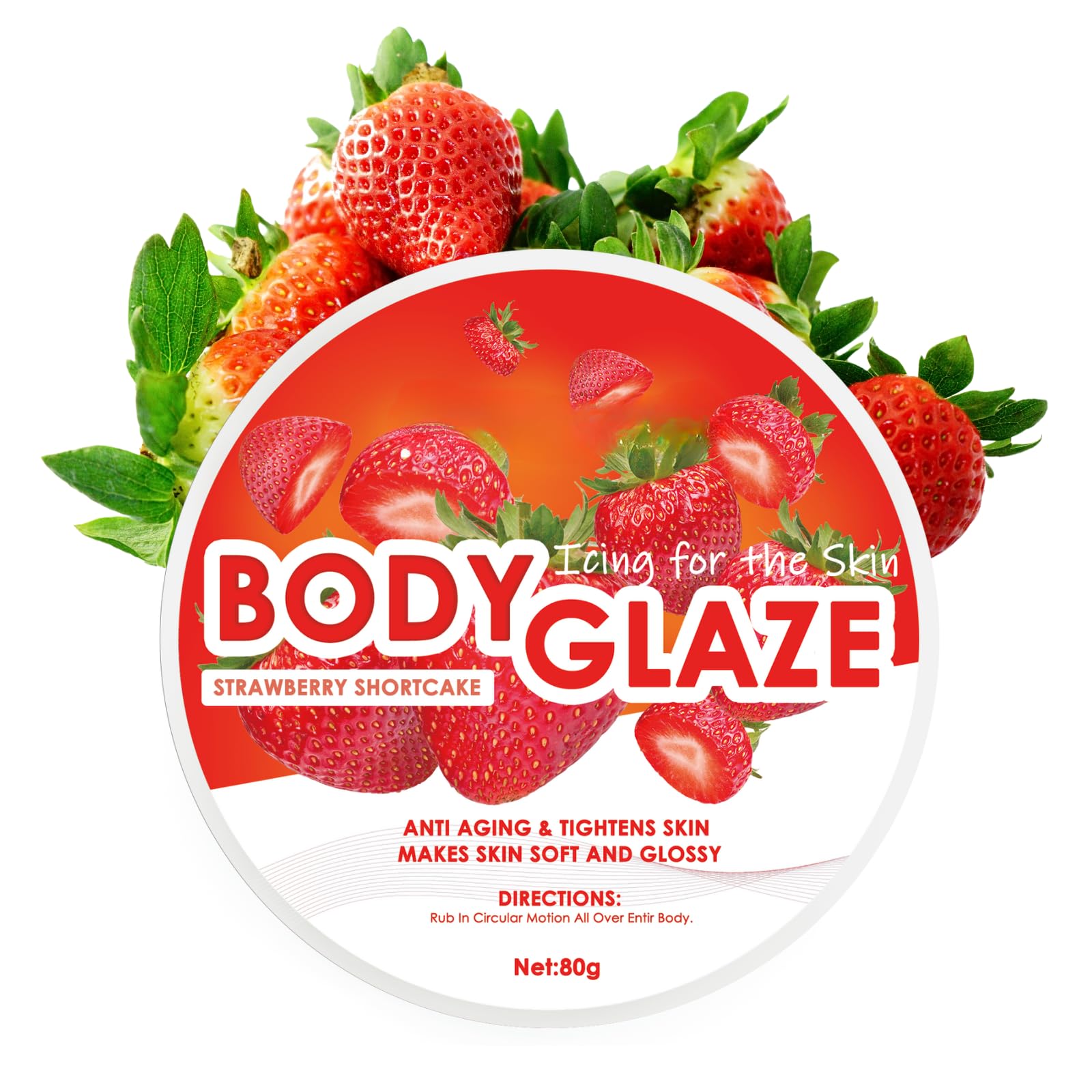 Say goodbye to dry skin with our deep hydrating strawberry body butter, perfect for all skin types. Our body glaze body butter is a whipped body butter for women that leaves skin soft and radiant without being greasy. With its anti-aging properties, it's the perfect butter body moisturizer for women. Our Body Glaze Body Butter is easy to use. Simply apply daily to dry areas of the body and rub in thoroughly to make full contact with the skin. Apply directly after showering for maximum hydration and softer, smoother skin. Our body butter is loaded with significant benefits. It not only leaves the skin soft and glossy, but it also tightens the skin and prevents sagging and wrinkling. It's the ultimate icing for your skin, with a creamy and silky texture that melts into your hands and onto your skin for a more refreshed look. Features: ✓ Help create a tighter, sleeker, upper arm area. ✓ Help moisturizing your skin ✓ Help smooth the look of crepey skin. ✓ Help smooth and tighten the look of arms. Specification: Name: Strawberry Body Glaze Net: 80g/each Shelf Life: 3years Skin Type: Suitable For All Types Of Skin Note: 1.Due to manual measurement, please allow a difference of 1-5g/1-2cm. 2.Due to different displays and different lighting, the picture may not. SAFETY WARNING For external use only. Avoid contact with eyes. Keep away from naked flame or direct heat sources.
