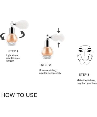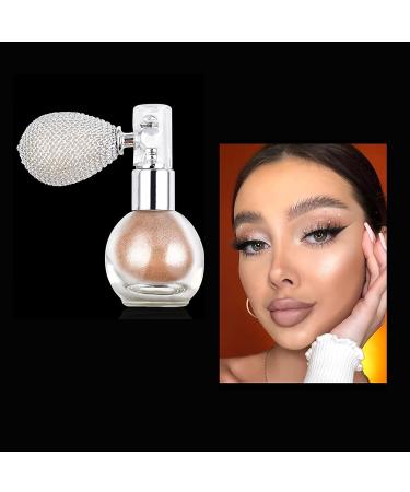 ?For Gifts?The Shimmering Spray Powder is suitable for gift giving,for lovers,friends,family,for Birthday, Valentine's Day,Christmas,and other holidays. ?Easy to Carry?The Shimmering Spray Powder is small and portable, perfect for daily work,travel,party. ?Long Lasting Glitter Effect?High light spray has a refreshing texture,good shine,easy to apply to the skin,make you look glowing and glamorous. ?Special Design?just need to press the balloon lightly, the shimmering highlight powder will be sprayed on the shoulders,arms,hair,clavicle ,legs and so on. ?Multiple Uses?The glitter spray is not only for the face, You can apply it to the areas you want to highlight,such as shoulders,arms, hair,clavicle , legs and so on. create a three-dimensional look with a glamorous shine.Recommended Uses For Product: Body Makeup. Item Form: Spray, Powder. Number of Pieces: 1. Item Weight: 3 Grams. Brand: YXKJMN. Color: Champagne Gold. Date First Available: April 24, 2022. Best Sellers Rank: #128,389 in Beauty & Personal Care. Customer Reviews: 4.1 4.1 out of 5 stars 76 ratings 4.1 out of 5 stars. Country of Origin: China. : B09YPYDGH4. Manufacturer: YXKJMN. Item Weight: 0.106 ounces. Package Dimensions: 2.99 x 2.68 x 1.54 inches.