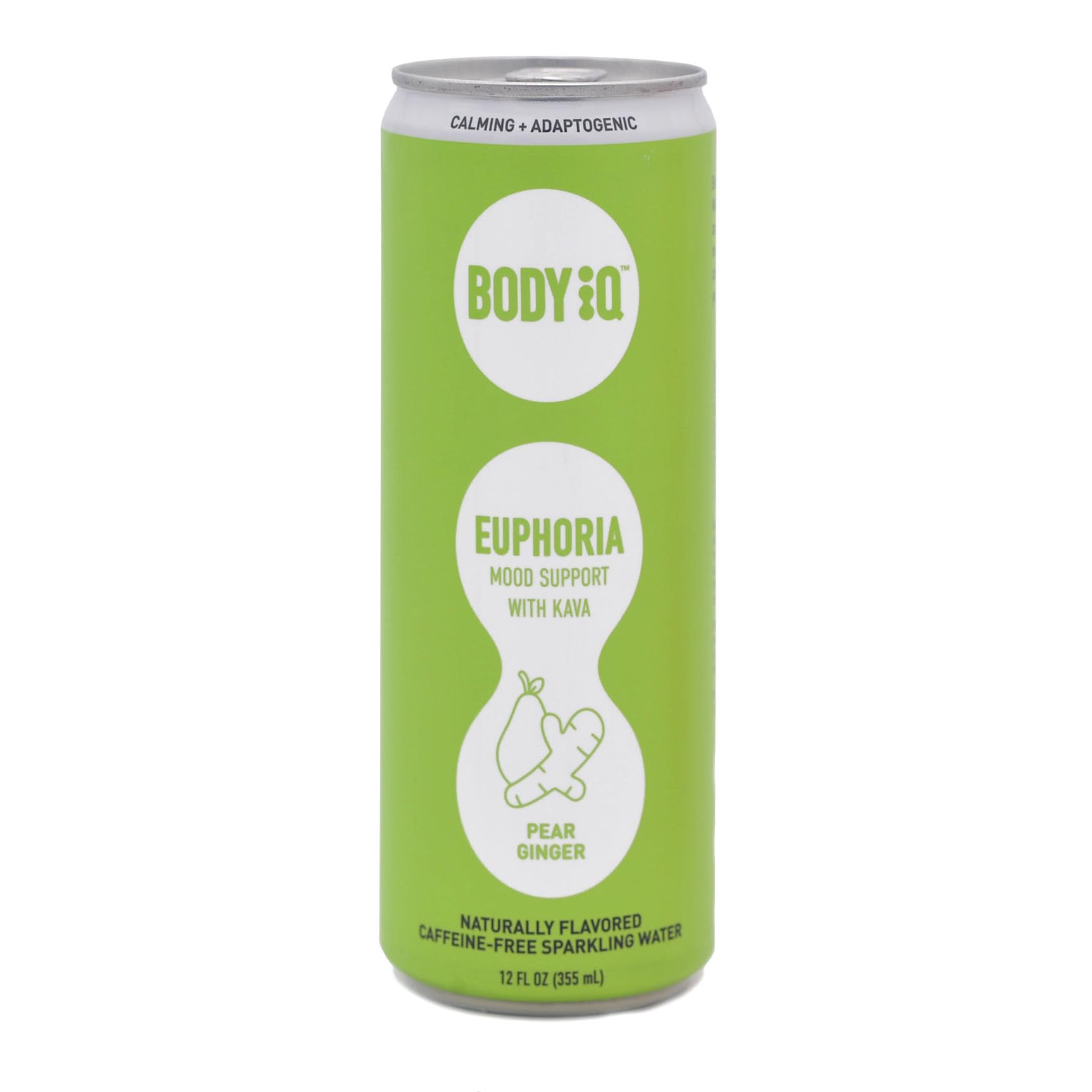 Body iQ Euphoria Intelligent Sparkling Water Mood Support with antioxidants adaptogens Great Tasting lightly sweetned Flavored Water Pear Ginger 12-Pack