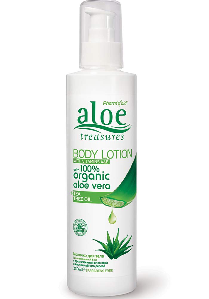 Immerse yourself in the world of refreshing moisturizer with aloe treasures body lotion with Tea Tree Oil 250 ml, a masterpiece of natural care.This body lotion offers a refreshing experience, soaked with the power of 100% organic aloe vera and enriched with Tea Tree Oil for unique and effective skin care. Refreshing hydration with organic aloe vera: The basis of this body lotion consists of 100% bio-aloe vera, a plant known for its moisturizing and calming properties.The aloe vera in this formula penetrates deep into the skin, captures moisture and provides intensive moisture.The result is a refreshing and hydrated skin that radiates with vitality. Tea Tree Oil for unique care: The addition of Tea Tree Oil gives this body lotion a special note.Tea Tree Oil is known for its natural antiseptic properties and calming effect on the skin.It adds a refreshing and revitalizing dimension to the moisturizing experience, so that your skin feels renewed and cleaned. Enriched with vitamins and nourishing ingredients: the aloe treasures body lotion is more than just moisturizing.This formula is enriched with the vitamins A&E, panthenol, shea butter and other nourishing ingredients.Vitamins A and E are known for their antioxidant properties, while panthenol and shea butter soothe, soften and protect the skin.This combination of ingredients ensures a comprehensive improvement in the skin condition. Protection, care and calming: This body lotion offers triple approach for skin care.It protects the skin from external influences, supplies the skin with essential nutrients and soothes the skin, so GENERAL INFORMATION Aloe treasures cosmetics improves the skin moisture restores lost skin elasticity and suppleness (not greasy): A unique quality of this body lotion is its ability to restore lost skin elasticity and suppleness without leaving a greasy deficit.The light formula is easily absorbed by the skin so that you can enjoy a silky soft skin without sticky feeling.Protection, care and calming: The aloe treasures body lotion offers a triple approach for skin care.It protects the skin from external influences, supplies it with essential nutrients and calms them down to ensure comprehensive care for the entire body.Enriched with vitamins and nourishing ingredients: This body lotion goes beyond conventional moisture care.It is enriched with the vitamins A&E, panthenol, shea butter and other nourishing ingredients.The antioxidant properties of vitamin A and E, combined with panthenol and shea butter, soothe, soften and protect the skin.The formula extensively improves skin condition.Tea Tree Oil for unique care: The addition of Tea Tree Oil gives this body lotion a special note.The natural antiseptic properties of this oil, combined with its calming effect, give the moisturizing experience a refreshing and revitalizing dimension.Your skin will feel renewed and cleaned.Refreshing hydration with bio-aloe vera: Dive into the world of refreshing moisturizer with aloe treasures body lotion with Tea Tree Oil 250 ml, which is 100% based on bio-aloe vera.This plant is known for its moisturizing and calming properties.The formula penetrates deeply into the skin to bind moisture and donate intensively, for a refreshing and radiant skin full of vitality. Tauchen Sie ein in die Welt erfrischender Feuchtigkeitspflege mit Aloe Treasures Bodylotion mit Tea Tree Oil 250 ml, einem Meisterwerk der natürlichen Pflege. Diese Bodylotion bietet ein erfrischendes Erlebnis, durchtränkt mit der Kraft von 100% Bio-Aloe Vera und angereichert mit Tea Tree Öl für eine einzigartige und effektive Hautpflege. Erfrischende Hydratation mit Bio-Aloe Vera: Die Grundlage dieser Bodylotion besteht aus 100% Bio-Aloe Vera, einer Pflanze, die für ihre feuchtigkeitsspendenden und beruhigenden Eigenschaften bekannt ist. Das Aloe Vera in dieser Formel dringt tief in die Haut ein, hält Feuchtigkeit fest und spendet intensiv Feuchtigkeit. Das Ergebnis ist eine erfrischte und hydratisierte Haut, die vor Vitalität strahlt. Tea Tree Oil für eine einzigartige Pflege: Die Zugabe von Tea Tree Öl verleiht dieser Bodylotion eine besondere Note. Tea Tree Öl ist für seine natürlichen antiseptischen Eigenschaften und beruhigende Wirkung auf die Haut bekannt. Es fügt der feuchtigkeitsspendenden Erfahrung eine erfrischende und revitalisierende Dimension hinzu, sodass Ihre Haut sich erneuert und gereinigt anfühlt. Angereichert mit Vitaminen und Nährenden Inhaltsstoffen: Die Aloe Treasures Bodylotion ist mehr als nur Feuchtigkeitspflege. Diese Formel ist angereichert mit den Vitaminen A & E, Panthenol, Sheabutter und anderen nährenden Inhaltsstoffen. Die Vitamine A und E sind für ihre antioxidativen Eigenschaften bekannt, während Panthenol und Sheabutter die Haut beruhigen, erweichen und schützen. Diese Kombination von Inhaltsstoffen sorgt für eine umfassende Verbesserung des Hautzustands. Schutz, Pflege und Beruhigung: Diese Bodylotion bietet einen dreifachen Ansatz für die Hautpflege. Sie schützt die Haut vor äußeren Einflüssen, versorgt die Haut mit essentiellen Nährstoffen und beruhigt die Haut, so ALLGEMEINE ANGABEN Aloe Treasures Cosmetics Verbessert die HautfeuchtigkeitStellt Verlorene Hautelastizität und Geschmeidigkeit Wieder Her (Nicht Fettig): Eine einzigartige Eigenschaft dieser Bodylotion ist ihre Fähigkeit, verlorene Hautelastizität und Geschmeidigkeit wiederherzustellen, ohne dabei einen fettigen Rückstand zu hinterlassen. Die leichte Formel wird leicht von der Haut aufgenommen, sodass Sie eine seidig-weiche Haut ohne klebriges Gefühl genießen können. Schutz, Pflege und Beruhigung: Die Aloe Treasures Bodylotion bietet einen dreifachen Ansatz für die Hautpflege. Sie schützt die Haut vor äußeren Einflüssen, versorgt sie mit essentiellen Nährstoffen und beruhigt sie, um eine umfassende Pflege für den gesamten Körper zu gewährleisten. Angereichert mit Vitaminen und Nährenden Inhaltsstoffen: Diese Bodylotion geht üb