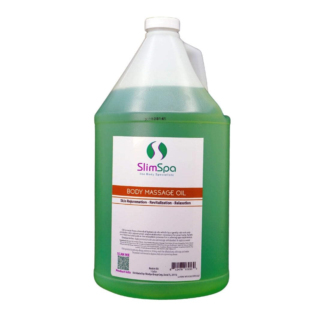 SlimSpa Body Massage Oil: Your Path to Radiant Skin and Unparalleled Relaxation SlimSpa Body Massage Oil, available in a convenient 1-gallon professional bulk size, is your secret weapon for skin rejuvenation, revitalization, and relaxation. Crafted from a carefully curated blend of botanical oils, this remarkable multi-purpose oil offers a myriad of benefits that can transform the way your clients feel about themselves and how you deliver treatments. Top 10 Reasons Why SlimSpa Body Massage Oil is Essential for Your Spa: Skin Rejuvenation: Our unique formula is designed to promote skin rejuvenation, leaving your clients' bodies, hands, and feet feeling refreshed and revitalized after every treatment. Enhanced Relaxation: More than just nourishing the skin, SlimSpa Body Massage Oil enhances the relaxation experience, creating a soothing spa ambiance that your clients will treasure and return for. Cellulite Improvement: Combat and improve the appearance of cellulite effectively with our massage oil. It contains a high concentration of pure botanical oils and active ingredients that enhance circulation, smoothing and firming the skin in the process. Triple Action Formula: SlimSpa Body Massage Oil offers a triple-action formula – toning, tightening, and toxin elimination. It immediately smoothens and tones the skin, restoring suppleness and firmness. Versatile Multi-Treatment Usage: This oil is incredibly versatile and can be seamlessly integrated into various body treatments, including traditional body massages, vacuum therapy, wood therapy, dermologie, radiofrequency procedures, cavitation, and ultrasound treatments. Natural Aromatherapy: Clients will indulge in a luscious, natural fragrance experience as you apply SlimSpa Body Massage Oil, creating a delightful aVersatile Usage: This oil is incredibly versatile and can be seamlessly integrated into various body treatments, including body massages, vacuum therapy, wood therapy, dermologie, and radiofrequency procedures. Triple Action Formula: SlimSpa Body Massage Oil offers a triple-action formula – toning, tightening, and toxin elimination. It immediately smoothens and tones the skin, restoring suppleness and firmness. Cellulite Improvement: Combat and improve the appearance of cellulite effectively with our massage oil. It contains a high concentration of pure Seed Oil and active ingredients that enhance circulation, smoothing and firming the skin in the process. Relaxation: More than just nourishing the skin, SlimSpa Body Massage Oil enhances the relaxation experience, creating a soothing spa ambiance that your clients will treasure. Skin Rejuvenation: Our unique formula is designed to promote skin rejuvenation, leaving your clients' bodies, hands, and feet feeling refreshed and revitalized.