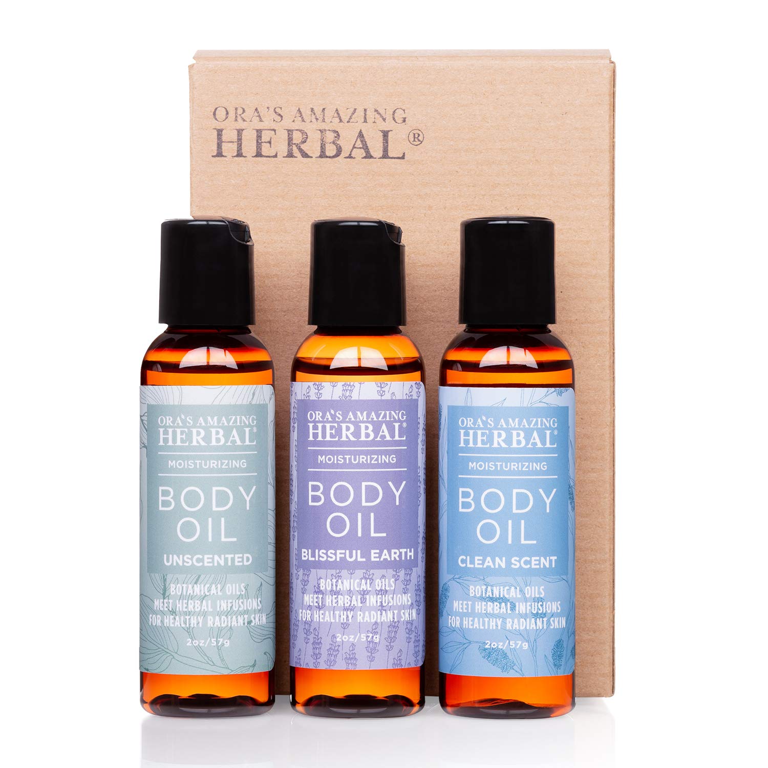 Body Oil Travel Size Variety Set Hydrate Dry Skin Massage Oil with Essential Oils Moisturizing Body Oils for Men and Women Ora s Amazing Herbal (Pack of 3 2.0 Fl Oz ea)
