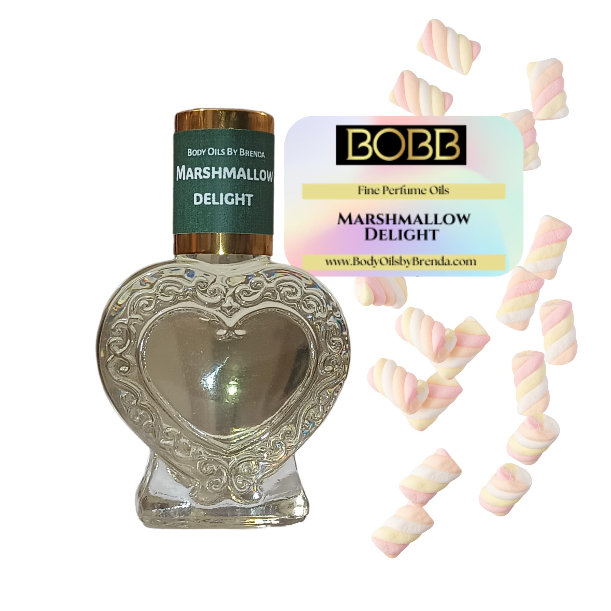 Body Oils by Brenda Marshmallow Delight Body Oil Gourmand Sweet Vanilla Aroma Amber Vanilla Fragrance Alcohol Free Perfume Keepsake Bottle (1/2 oz. Roll-On)