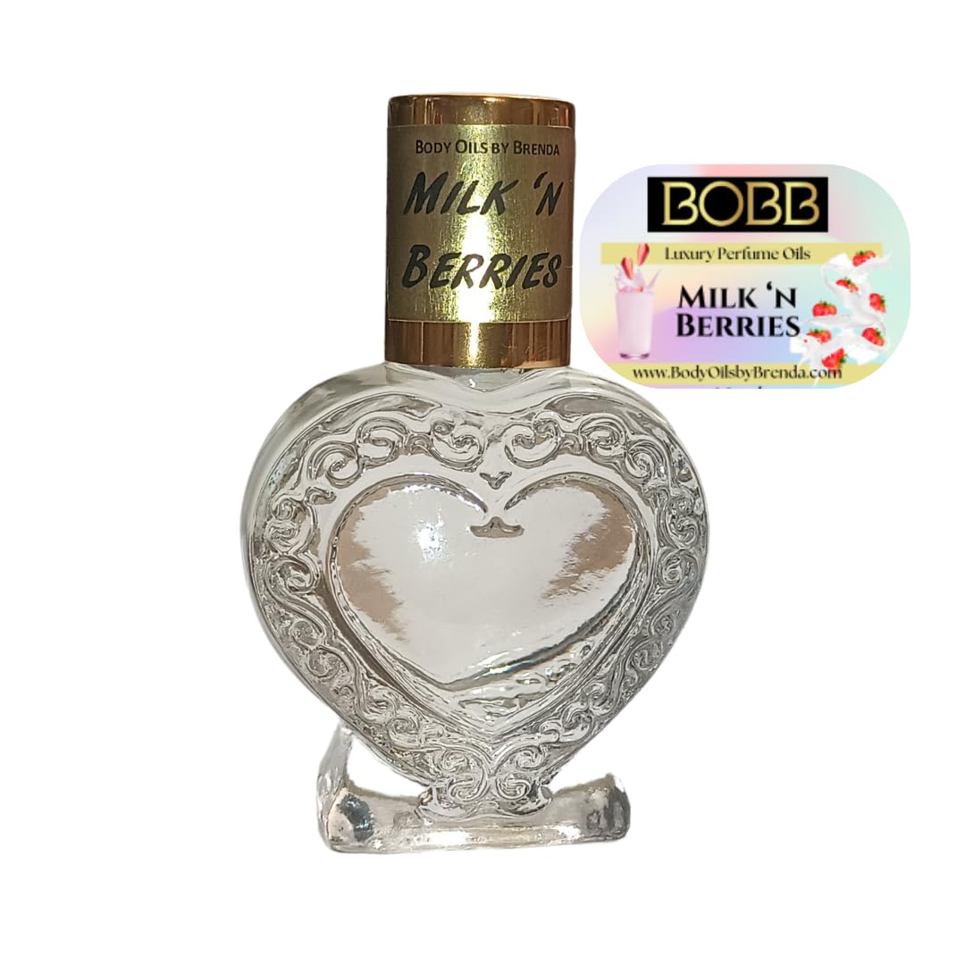 Indulge your senses with this enchanting Milk 'n Berries fragrance oil, presented in an exquisite heart-shaped glass bottle adorned with intricate scrollwork designs. This delightful scent opens with sweet, powdery notes that gracefully intertwine with a fruity strawberry essence, creating a nostalgic reminder of creamy strawberry milk. The sophisticated composition features a subtle lipstick accord that harmoniously blends with the powdery elements, while the milky dry-down adds a comforting touch. The fragrance evolves on the skin, revealing an unexpected spicy undertone that adds complexity to this otherwise sweet and innocent blend. Housed in a romantic collector-worthy bottle, this perfume oil makes for both a beautiful display piece and a charming everyday scent that's sure to garner compliments.