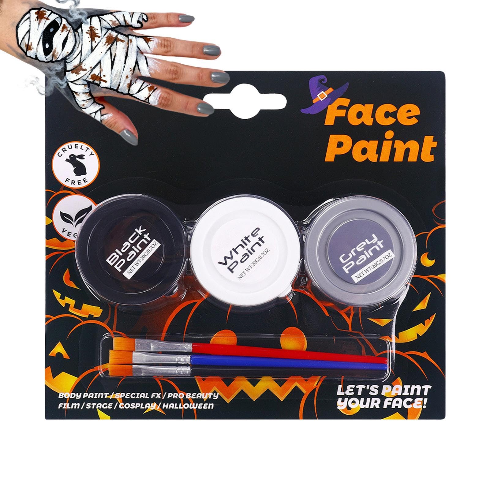 Cosplay face paint offers a versatile solution for creative expression with its three vibrant colors suitable for various occasions. This water-soluble, washable cream formula ensures easy application and removal while being gentle on the skin. Designed for both women and adults, it's perfect for Halloween makeup kits, gothic parties, sporting events, or themed gatherings. Use it to transform yourself into a clown, vampire, witch, skeleton, or anything else you can imagine. The included tools make body makeup easy to apply, suitable for both women and men who enjoy cosplay or costume creativity. Product Attributes: Material: Water-soluble paint Size: 19.5 x 17.3 x 3.2 cm 7.68 x 6.81 x 1.26 inches Weight: 119 g Features: Water-soluble formula for easy cleanup, vibrant colors, and easy application Note: Due to different lighting and screen settings, the item's color may be slightly different from the picture. Due to different manual measurements, please allow a 1-2 cm size difference. Product List: Halloween Face Paints 3 pieces Brushes 3 pieces SAFETY WARNING Not applicableSkin-Friendly: This adult body paint has a smooth, soft texture that feels gentle on the skin, preventing irritation even for sensitive skin. It ensures safety and comfort for costume design, festivals, or family art projects. Ideal for children and adults, it allows for extended use at events like theme parties or creative activities at home without the risk of skin reactions. Easy Removal: Designed with a water-soluble formula, this Halloween face paint ensures effortless cleanup, saving time on removal without leaving any residue. A simple rinse with water is all it takes for a flawless result, making it perfect for parties and family events, where it offers a reliable solution for maintaining cleanliness and avoiding the worry of residue on skin or clothing. Bold Costume Effects: This Halloween face paint features a palette of three blendable colors designed for versatile use, allowing users to create special and impactful designs ideal for costumes, stage performances, or festive occasions. It guarantees bold and striking results with every application, with easy blending and color intensity that highlights every detail. The finishes are always vibrant. Ready-to-Use Solution: Designed for maximum portability, this Halloween makeup fits easily into bags for convenient and effortless transport. Its lightweight and compact form enables quick applications during Halloween parades, themed events, or photo shoots, offering immediate convenience. Perfect for on-the-go use, it ensures reliable performance for quick makeup in any situation. Guaranteed Even Coverage: The skin makeup delivers rich, saturated pigments with a smooth, streak-free finish, creating vibrant and even color that enhances costumes, theatrical performances, or creative body art. It resists smudging for extended wear, perfect for long festive evenings, themed events, or active use, providing perfect coverage without alteration.Peinture Corporelle Pour La Peau Crème De Maquillage Lavable - 3 Couleurs De Maquillage Pour Fête - Pour Fête Goth Événement Sportif Clown Vampire Sorcière Et Squelette Argent noir et blancDESCRIPTION DU PRODUIT DESCRIPTION DU PRODUIT Le maquillage facial pour cosplay offre une solution polyvalente pour l'expression créative grâce à ses trois couleurs vibrantes adaptées à diverses occasions. Cette formule en crème, soluble dans l'eau et lavable, garantit une application et un retrait faciles tout en étant douce pour la peau. Conçu pour les comme pour les adultes, il est parfait pour les kits de maquillage d'Halloween, les soirées gothiques, les événements sportifs ou les rassemblements à thème. Utilisez-le pour vous transformer en clown, vampire, sorcière, squelette ou tout autre imaginatif. Les outils inclus facilitent le maquillage corporel, convenant aussi bien aux femmes qu'aux hommes qui aiment le cosplay ou la créativité des costumes. Attributs du produit : Matériau : Peinture soluble dans l'eau Taille: 19,5 x 17,3 x 3,2 cm 7,68 x 6,81 x 1,26 pouces Poids : 119 g Caractéristiques : Formule soluble dans l'eau pour un nettoyage facile, des couleurs vives et une application facile Remarque : en raison des différents paramètres d'éclairage et d'écran, la couleur de l'article peut être légèrement différente de celle de l'image. En raison des différentes mesures manuelles, veuillez prévoir une différence de taille de 1 à 2 cm. Liste de produits : Peintures pour le visage d'Halloween 3 pièces Brosse 3 pièces AVERTISSEMENT DE SÉCURITÉ N'est pas applicableRespectueux de la Peau: La peinture corporelle pour adultes possède une texture lisse et douce au contact de la peau, évitant toute irritation même pour les peaux sensibles, et assure sécurité et confort pour la conception de costumes, les festivals ou les projets artistiques familiaux. Idéale pour les et les adultes, elle permet une utilisation prolongée lors d'événements comme les fêtes à thème ou les activités créatives à la maison, sans risque de réaction cutanée. Enlèvement Sans : Conçu avec une formule soluble dans l'eau, le maquillage visage Halloween assure un nettoyage sans effort qui économise du temps lors du retrait sans laisser de persistante. Un simple rinçage à l'eau suffit pour un résultat impeccable, le rendant parfait pour les fêtes d'et les événements familiaux, où il offre une solution fiable pour maintenir la propreté et éviter les soucis de résidus sur la peau ou les vêtements. Effets Audacieux Costumes: Ce maquillage visage Halloween propose une palette de trois couleurs mélangeables conçue pour une utilisation polyvalente, permettant aux utilisateurs de créer des designs spéciaux et percutants idéaux pour les costumes, les spectacles sur scène ou les occasions festives. Il garantit des résultats audacieux et saisissants à chaque application, avec une facilité de mélange et une in