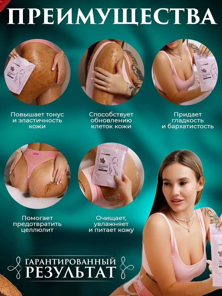 Антицеллюлитный кофейный скраб для женщин с термо эффектом крупного помола – это Тренд сезона 2023 и выбор покупателей. Отлично очищает кожу, снимает сухой слой, а уходовая формула, комплекс в составе скраба питает, восстанавливает и эффективно удаляет морщины за счёт лифтинг эффекта. Это лучшее органик средство премиум класса в борьбе с целлюлитом. Термо эффект - разгоняет лимфоток. Кожа тела и лица становится мягкой и гладкой. Кофейный экстракт для увлажнения кожи и вкусного запаха, шоколадный, как аромат, шоколад. Натуральный кофе - отшелушивает кожу и глубоко очищает поры. Благодаря содержанию кофеина и кислот, способствует разглаживанию и омоложению кожи девушек, улучшению кровообращения. Органические масла для питания и увлажнения кожи, предотвращение сухости и шелушение, борьба с признаками старения и возраста - морщинами, складками и провисанием. Средство для душа линия спа анти целлюлит устраняет покраснения и раздражение, имеет косметический эффект, сохраняет упругость и здоровое сияние кожи. Обертывание, пленка, щетка, мочалка и прочие мануляции для кожи больше не требуются, скраб прекрасно работает как массажка и дарит отличный увлажняющий, лимфодренажный результат. Антицелюлитный эффект со сладким запахом. Энергия, сила, красота, блестящий, драгоценный экспресс эффект вашей коже обеспечен и красивый комплимент от мужчин и женщин не заставит себя ждать. Эко скраб витаминный, массажный предназначен не только для ванны как домашние средства, но и для сауны, для бани как банный. Пилинг массаж - бестселлер уход для вашей кожи и лучший, необычный подарок маме, жене, сестре, подруге, коллеге или любимой. Массажная косметика женская body в подарок на день рождения, день влюбленных, 8 марта, подарочный вариант на любой праздник или без повода. Распродажа, интересные акции, скидки и новая коллекция всегда есть в нашем магазине, и вы сможете купить подарочки для себя, для друзей, родных и близких.