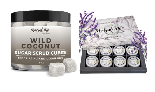 100 Quality Product - Our Shower Soothers Are Crafted In Small Batches With High Quality Natural Ingredients. There Are No Colorants, Artificial Ingredients Or Preservatives In Our Shower Fizzies. Our Shower Pods Are Non-slip, Vegan, And Cruelty-Free For Relaxing Showers. Treat Yourself to the Best Lavender Aromatherapy with this Calming Shower Steamers Gift Set. Lavender Shower Tablets activate In The Shower giving you the Ultimate Spa Experience. ESSENTIAL OIL AROMATHERAPY: The cleansing effect of this unique blend of fine grain sugar, organic essential oils, and skin-loving nutrients is ideal to combat blocked pores, blackheads and in-grown hairs, Pus you will love the coconut aroma!. MOISTURIZES AND SMOOTHS SKIN: Contains Organic and vegan skin-loving oils and butters that detoxify, hydrate, and moisturize your skin, leaving it ultra-soft, smooth, and beautiful. MESS FREE EXFOLIATION Our Unique formula does everything a body scrub do plus the convenience of a pre-measured cube. Take 1 or 2 cubes in shower or bath for all body exfoliation.