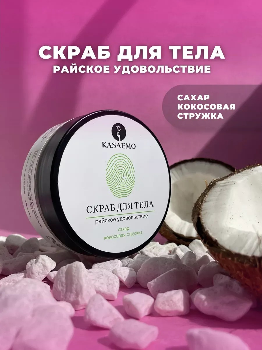 Скраб для тела с кокосовым маслом и кокосовой стружкой KASAEMO – это идеальный выбор для тех, кто ценит не только эффективность, но и приятный парфюмированный аромат. Он предназначен для глубокого очищения и увлажнения кожи тела, шеи и декольте. Благодаря натуральным профессиональным компонентам, таким как сахар и виноградное масло он не только отшелушивает мертвые клетки, но и питает, делая её более гладкой и упругой. Аромат кокоса добавляет процессу ухода за кожей особую приятность и успокаивает чувства. Использование скраба KASAEMO поможет вашей коже выглядеть здоровой и обладать естественным блеском. Сахарный скраб с натуральными маслами и лепестками роз, станет прекрасным подарком на любой праздник девочкам подросткам, девушкам и женщинам на 8 марта, день рождения или новый год. Любовь к себе начинается с ухода за собой. 200гр.