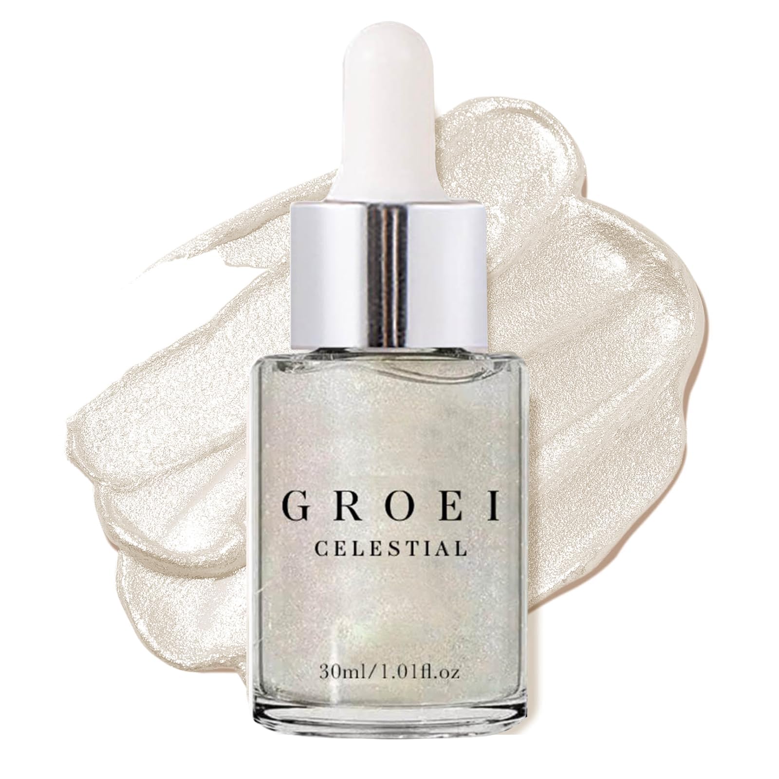 Body Shimmer Oil Face Brighten Glow Highlighter Body Makeup Shine Glitter Gold Liquid Shimmer Oil with Natural Ingredients for Skin Glow Liquid Illuminator Body Highlighter (CELESTIAL 1pc) CELESTIAL 1.01 Fl Oz (Pack of 1)