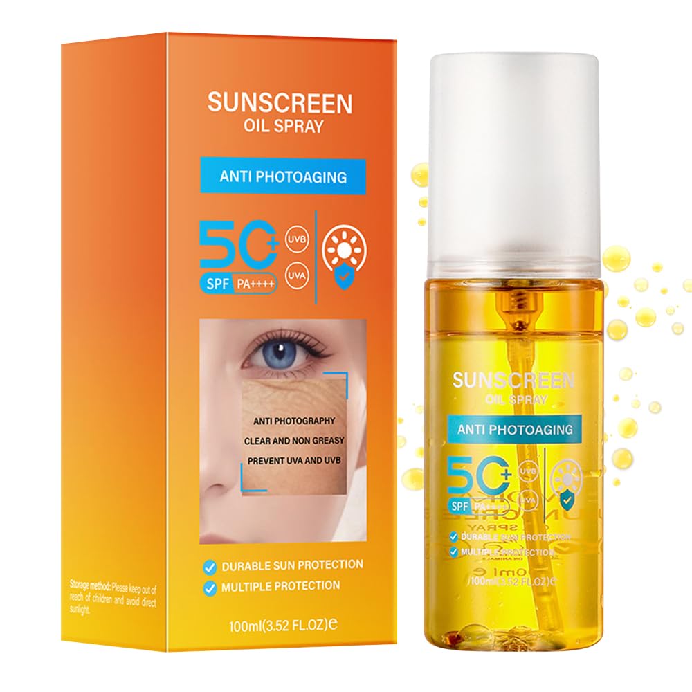 Easy to Use Reapply: Shake well before use and spray evenly on your body 15 minutes before sun exposure. Reapply every 2 hours or after swimming or sweating to maintain optimal protection. Our spray design ensures mess-free application and even coverage. Natural Ingredients for All Skin Types: Formulated with plant extracts like aloe leaves, sophora japonica, and echinacea, our sunscreen is gentle and non-irritating, making it suitable for all skin types. Micron-Level Mist for Even Coverage: Our sunscreen uses micron-level transparent fine mist technology, ensuring easy and even application. It dries quickly and seamlessly applies over skincare or makeup. Lightweight Refreshing Mist Formula: The sunscreen has a watery oil spray texture that absorbs quickly without leaving a sticky or greasy residue. It feels weightless on the skin, making it perfect for all-day wear. Powerful Sun Protection with SPF 50 : Our sunscreen features a broad-spectrum SPF 50 rating, providing superior defense against both UVA and UVB rays. It effectively prevents sunburn, tanning, and premature aging, allowing you to enjoy outdoor activities without worrying about sun damage.