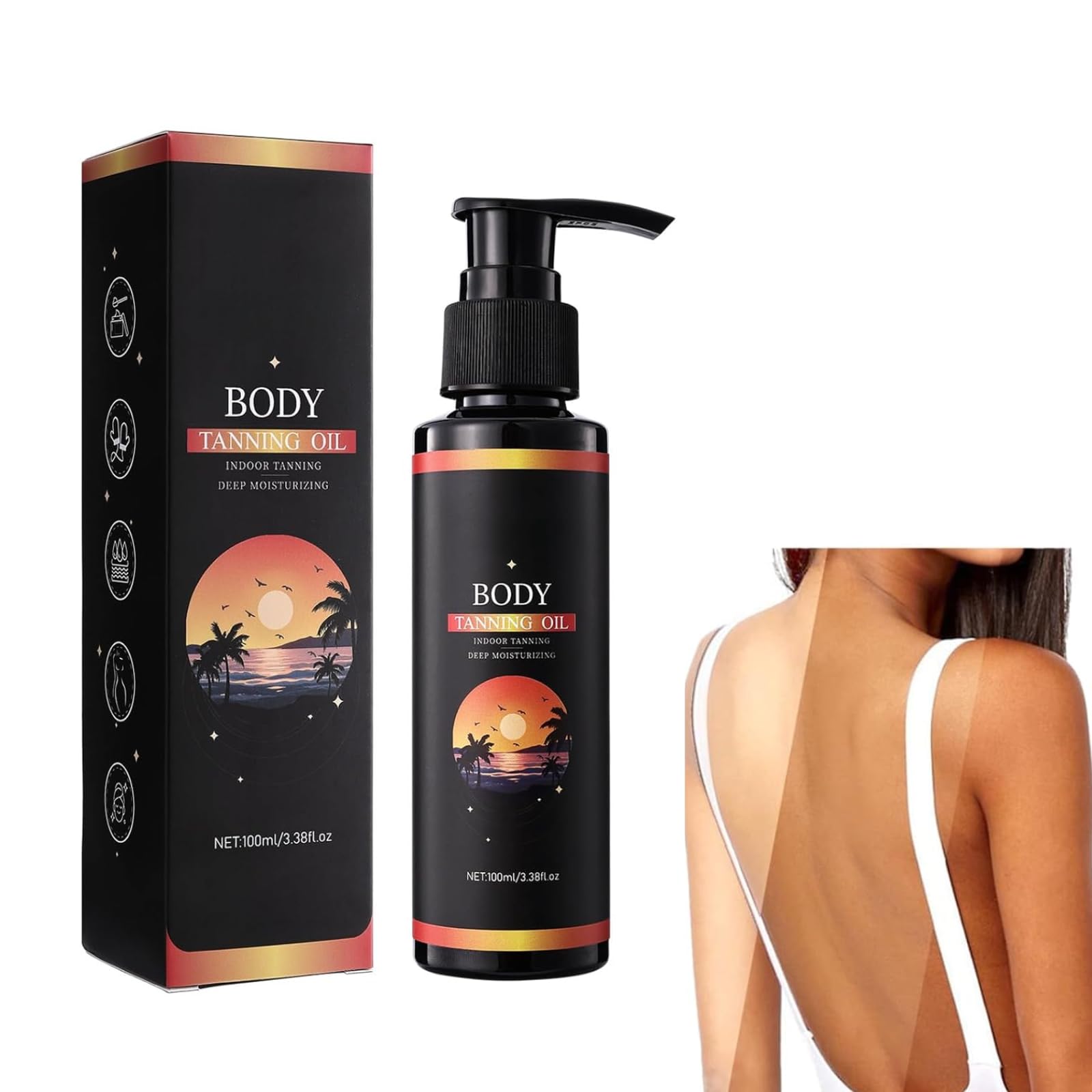 Body Tanning Oil for Glowing Skin Deep Moisturizing Formula with Coconut Oil & Vitamin E Indoor & Outdoor Use Sun-Kissed Bronze Glow 100ml (1PC)