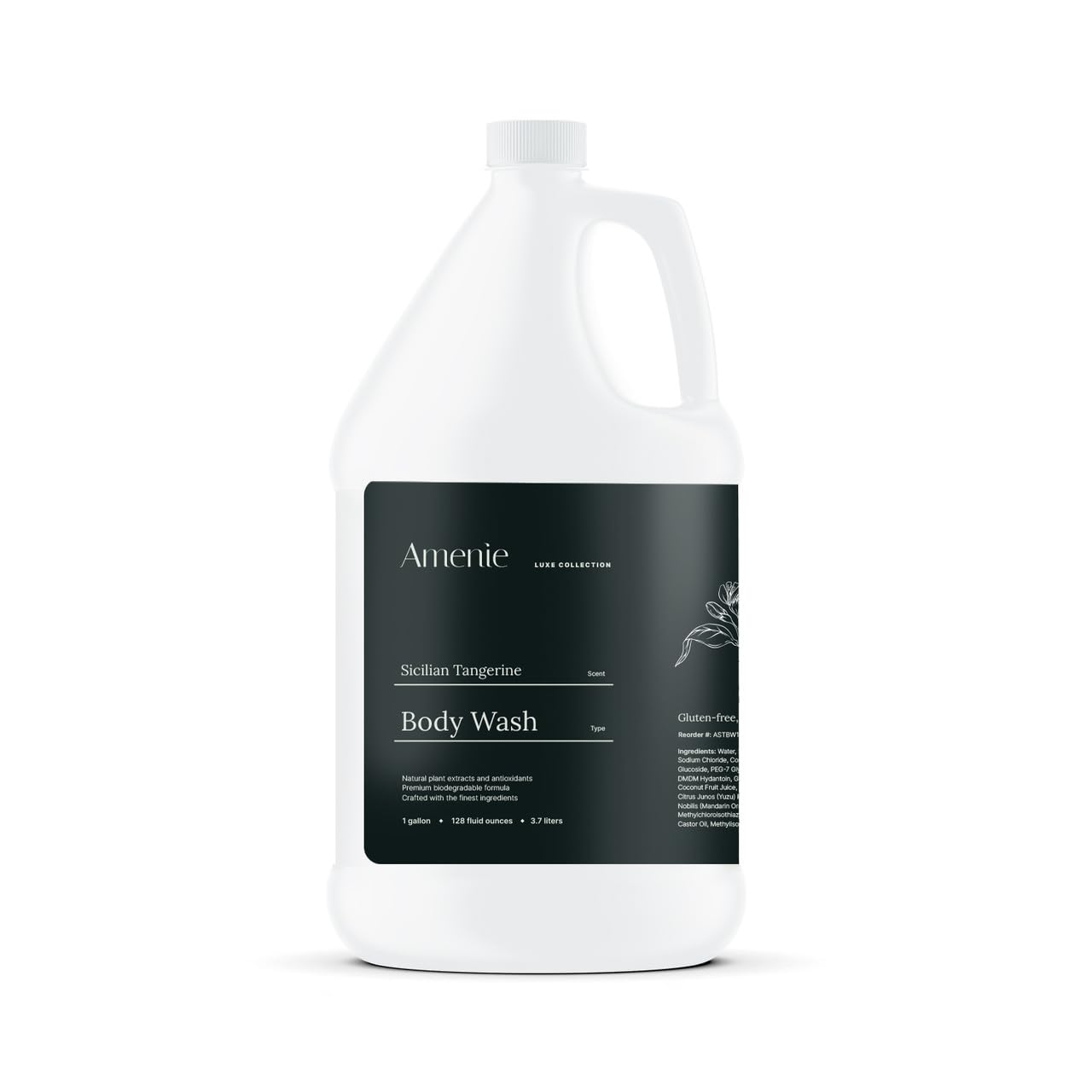 Amenie Sicilian Tangerine Body Wash offers a luxurious, spa-like cleansing experience with its vibrant and uplifting citrus scent. Unlike shower gel, which often has a thicker consistency, this body wash features a gentle formula enriched with aloe and sunflower oil to cleanse and refresh while maintaining the skin's natural moisture. Crafted with eco-friendly, biodegradable ingredients, this body wash provides a rich, foaming lather that leaves skin smooth, soft, and subtly fragranced. Ideal for hospitality settings, it upgrades your amenities with a touch of elegance and sustainability. Designed for hotels, spas, and high-traffic venues, Amenie Sicilian Tangerine Body Wash is available in convenient 1-gallon containers for seamless dispenser refills. This bulk size is part of Amenie's renowned brands offers, emphasizing the premium quality and variety of their products. It ensures cost-effective and sustainable hospitality solutions while maintaining the highest standards of elegance and care. The Amenie Sicilian Tangerine Bath Body Care collection is a refreshing and cleansing collection that promises to invigorate your senses with its bright citrus scent blended with Sicilian tangerine, bergamot, exotic mango, and passionfruit. Enhance your amenities with Amenie's premium bath products, crafted to deliver a superior blend of indulgence and sustainability. Perfect for creating a memorable guest experience.Designed for Hotels Spas – Ideal for hospitality settings, this bulk gallon body wash provides a luxurious cleansing experience, perfect for high-traffic environments like resorts and wellness center. Silky Soft, Hydrated Skin – A rich, foamy lather deeply cleanses and conditions, leaving skin smooth, supple, and delicately scented for an all-day fresh feeling. Eco-Friendly Safe for All Skin Types – A biodegradable, gluten-free, paraben-free, and cruelty-free formula that cleanses effectively while being gentle on skin and the environment. Gentle, Skin-Nourishing Formula – Infused with plant-based extracts and antioxidants, this body wash hydrates, refreshes, and restores skin's natural softness without causing irritation. Invigorating Citrus Freshness – A bright fusion of Sicilian tangerine, bergamot, and exotic fruit notes creates a refreshing, uplifting shower experience that energizes and awakens the senses.
