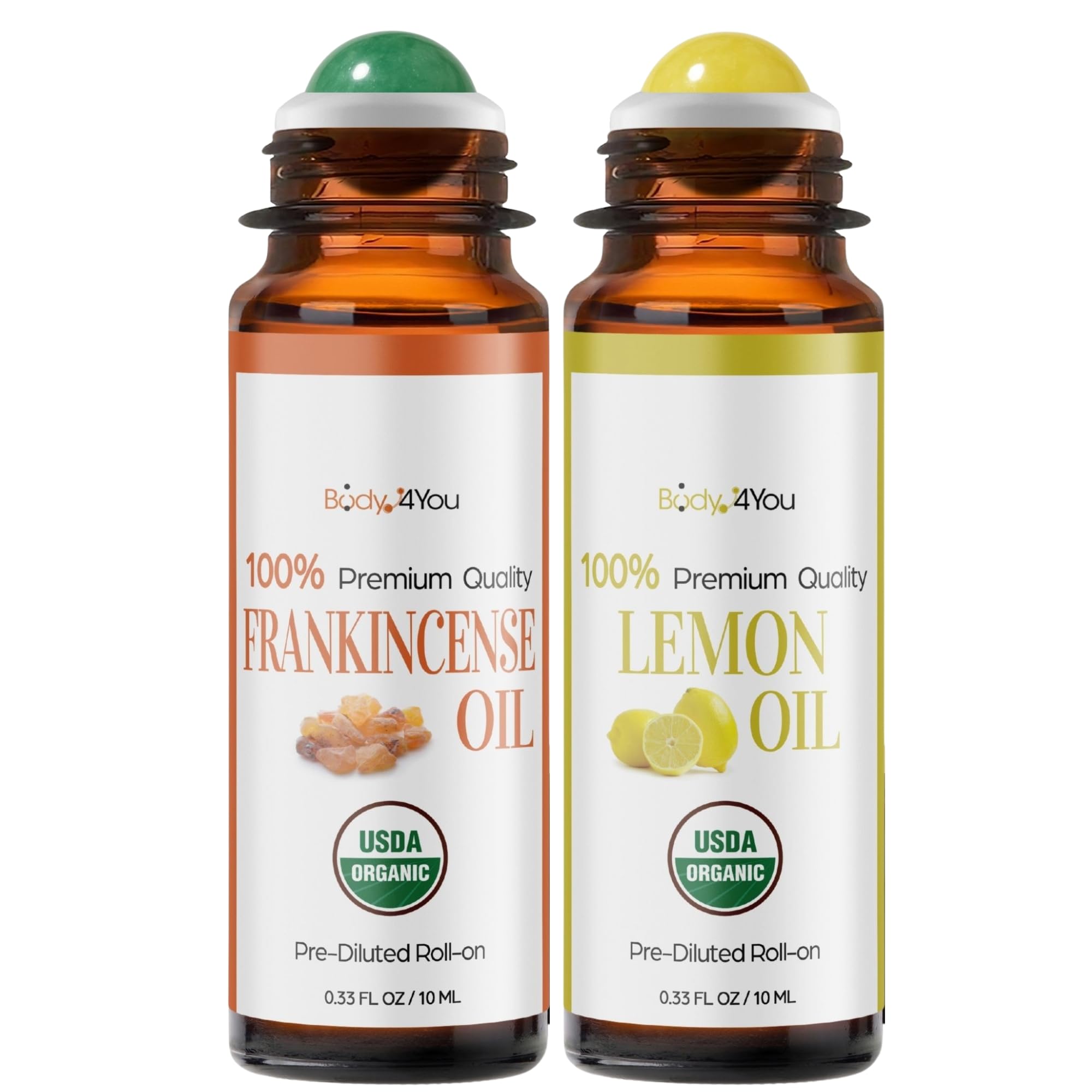 Meet the simplest way to wear essential oils every day: a pocket roll on filled with aromatic botanicals, comfortably diluted in lightweight MCT coconut oil. The clear, fast absorbing base cushions skin and lets scent sit close, never heavy. Glide the roller across wrists, temples, neck, or behind ears for a quiet, personal aura that supports the moment, whether you want to settle before bed, reset between meetings, or add a gentle finish after skincare. Each blend begins with the same dependable foundation. MCT oil is neutral in scent, spreads evenly, and sinks in quickly, so the focus stays on the botanicals. Citrus feels bright on busy mornings. Florals read soft and serene for winding down. Woods and resins bring a grounded, cozy mood. Mints and herbs feel crisp after a workout or a long day of travel. Wear a single note for clarity, pair two for depth, or rotate through the week to match your routine. Application stays simple. Roll a small amount onto clean skin and breathe normally, then reapply as needed without a greasy afterfeel. Use during meditation, breathwork, yoga, or journaling to mark the start of a practice. Keep one on your desk for a midafternoon refresh. Tuck one in your gym bag for a post shower finish. Slip one into a carry on to help create a familiar sense of home wherever you land. Care is straightforward. Patch test before first use. For external use only. Avoid the eye area. Stop use if irritation occurs. Keep closed, upright, and away from heat or direct sun. Because all blends share the same MCT base, they layer well with fragrance free skincare and will not compete with your favorite body lotion or hand cream, leaving a clean, soft veil of botanicals that fits easily into daily life.CERTIFIED QUALITY USA BOTTLED: USDA Organic ingredients, vegan and cruelty free, USA bottled, small batch filled and safety sealed, no parabens or mineral oil, no dyes or fragrance enhancers, contains coconut derivative. SIMPLE APPLICATION: Roll a thin layer on wrists temples neck and pulse points, trace along cuticles and dry spots, reapply as needed, travel ready size for desk bag or kit. LEMON DAYTIME RESET: Supports uplift on wrists and neck, helps refresh cuticles and dry areas, fast absorbing carrier for quick reapplication. FRANKINCENSE PULSE POINT CARE: Supports the look of skin tone on pulse points and dry patches, centers breathwork on wrists temples and neck, clean glide with no greasy residue. PREMIUM OIL DUO WITH STONE ROLLERS: USDA Organic 100 pure frankincense and lemon in organic MCT coconut oil, green aventurine and yellow jade rollers, amber glass bottles, 10 ml each.