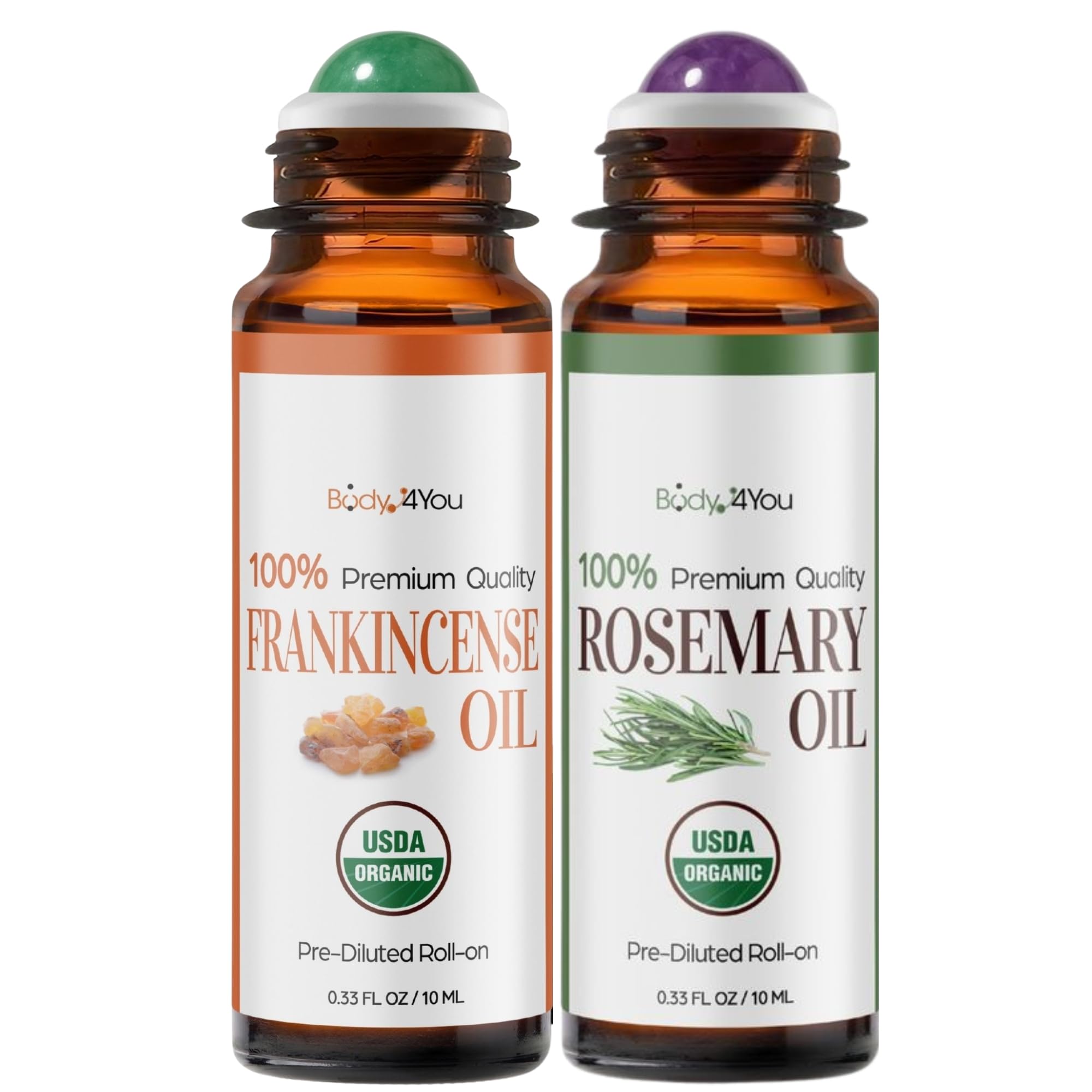 Meet the simplest way to wear essential oils every day: a pocket roll on filled with aromatic botanicals, comfortably diluted in lightweight MCT coconut oil. The clear, fast absorbing base cushions skin and lets scent sit close, never heavy. Glide the roller across wrists, temples, neck, or behind ears for a quiet, personal aura that supports the moment, whether you want to settle before bed, reset between meetings, or add a gentle finish after skincare. Each blend begins with the same dependable foundation. MCT oil is neutral in scent, spreads evenly, and sinks in quickly, so the focus stays on the botanicals. Citrus feels bright on busy mornings. Florals read soft and serene for winding down. Woods and resins bring a grounded, cozy mood. Mints and herbs feel crisp after a workout or a long day of travel. Wear a single note for clarity, pair two for depth, or rotate through the week to match your routine. Application stays simple. Roll a small amount onto clean skin and breathe normally, then reapply as needed without a greasy afterfeel. Use during meditation, breathwork, yoga, or journaling to mark the start of a practice. Keep one on your desk for a midafternoon refresh. Tuck one in your gym bag for a post shower finish. Slip one into a carry on to help create a familiar sense of home wherever you land. Care is straightforward. Patch test before first use. For external use only. Avoid the eye area. Stop use if irritation occurs. Keep closed, upright, and away from heat or direct sun. Because all blends share the same MCT base, they layer well with fragrance free skincare and will not compete with your favorite body lotion or hand cream, leaving a clean, soft veil of botanicals that fits easily into daily life.CERTIFIED QUALITY USA BOTTLED: USDA Organic ingredients, vegan and cruelty free, USA bottled in a certified facility, small batch filled and safety sealed, no parabens or mineral oil, no dyes or fragrance enhancers, contains coconut derivative. SIMPLE APPLICATION ROUTINE: Roll a thin layer on wrists neck temples and pulse points, trace along hairline and roots, reapply as needed, keep bedside desk or gym bag. ROSEMARY SCALP AND FOCUS: Herbal note complements scalp massage along hairline and roots, supports clear focus during tasks or study, precise glide for daily use. FRANKINCENSE PULSE POINT CARE: Warm resin aroma supports grounded breathwork on wrists temples and neck, soft glide layers on dry patches for comfortable feel with no greasy residue. PREMIUM OIL DUO w STONE ROLLERS: USDA Organic Certified 100 pure frankincense and rosemary in organic MCT coconut oil, natural green aventurine and amethyst stone rollers, amber glass bottles, travel size 10 ml each.