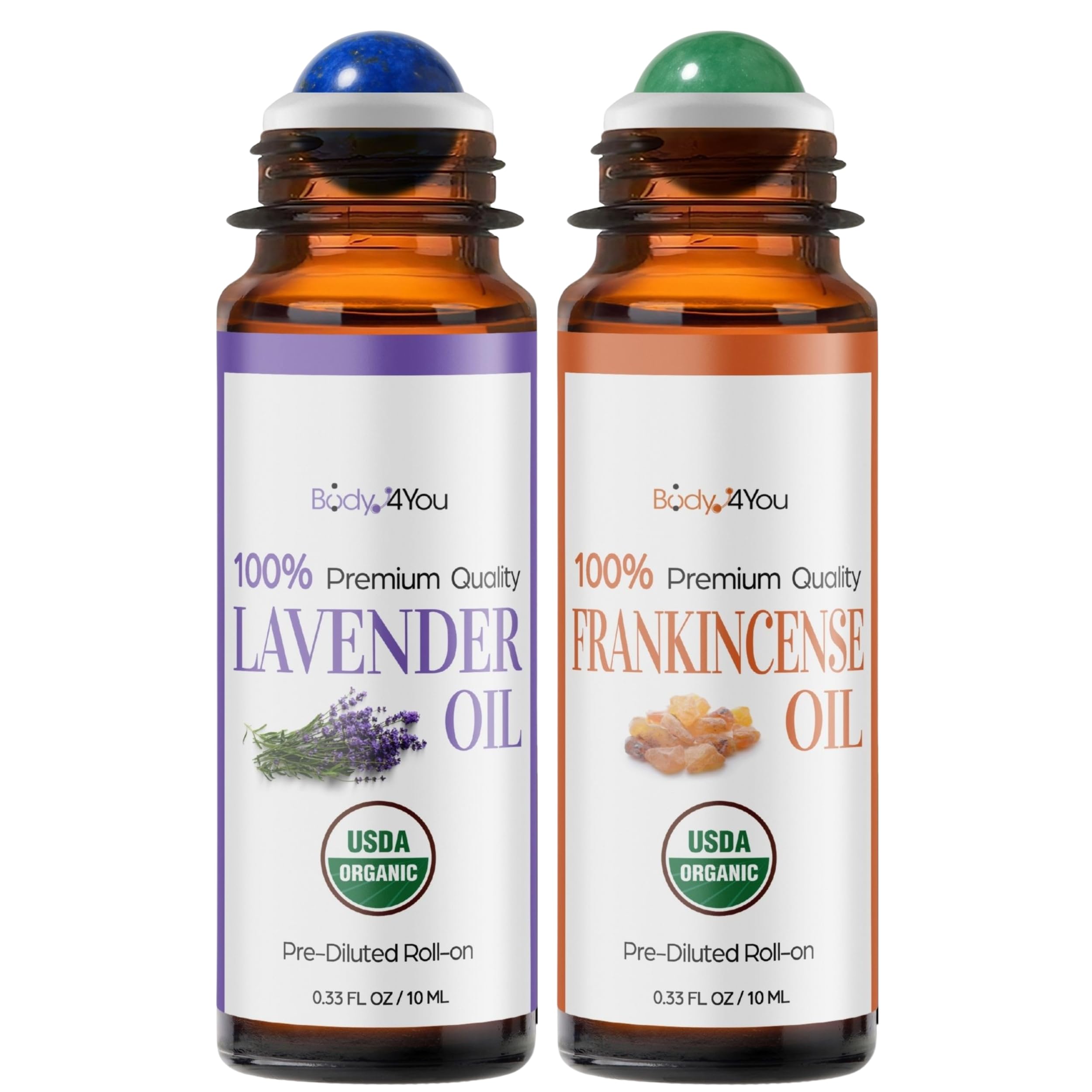 Meet the simplest way to wear essential oils every day: a pocket roll on filled with aromatic botanicals, comfortably diluted in lightweight MCT coconut oil. The clear, fast absorbing base cushions skin and lets scent sit close, never heavy. Glide the roller across wrists, temples, neck, or behind ears for a quiet, personal aura that supports the moment, whether you want to settle before bed, reset between meetings, or add a gentle finish after skincare. Each blend begins with the same dependable foundation. MCT oil is neutral in scent, spreads evenly, and sinks in quickly, so the focus stays on the botanicals. Citrus feels bright on busy mornings. Florals read soft and serene for winding down. Woods and resins bring a grounded, cozy mood. Mints and herbs feel crisp after a workout or a long day of travel. Wear a single note for clarity, pair two for depth, or rotate through the week to match your routine. Application stays simple. Roll a small amount onto clean skin and breathe normally, then reapply as needed without a greasy afterfeel. Use during meditation, breathwork, yoga, or journaling to mark the start of a practice. Keep one on your desk for a midafternoon refresh. Tuck one in your gym bag for a post shower finish. Slip one into a carry on to help create a familiar sense of home wherever you land. Care is straightforward. Patch test before first use. For external use only. Avoid the eye area. Stop use if irritation occurs. Keep closed, upright, and away from heat or direct sun. Because all blends share the same MCT base, they layer well with fragrance free skincare and will not compete with your favorite body lotion or hand cream, leaving a clean, soft veil of botanicals that fits easily into daily life.QUALITY AND STANDARDS: USDA Organic ingredients, vegan, cruelty free, USA bottled, small batch filled, safety sealed, no parabens or mineral oil, no dyes or fragrance enhancers, contains coconut derivative. SIMPLE APPLICATION: Roll on wrists, temples, neck, and pulse points, use before bed, add to meditation or breathing practice, travel size bottles store in bag or bedside. FRANKINCENSE ROLL ON: 100 pure frankincense (Boswellia carterii) in organic MCT coconut oil, green aventurine stone roller, resin aroma for grounding and breathwork. LAVENDER ROLL ON: 100 pure lavender (Lavandula angustifolia) in organic MCT coconut oil, amethyst stone roller, aroma for pulse points and evening wind down. PREMIUM OIL DUO WITH STONE ROLLERS: Two roll ons with USDA Organic 100 pure lavender and frankincense in organic MCT coconut oil, amethyst and green aventurine rollers, amber glass bottles, 10 ml each.