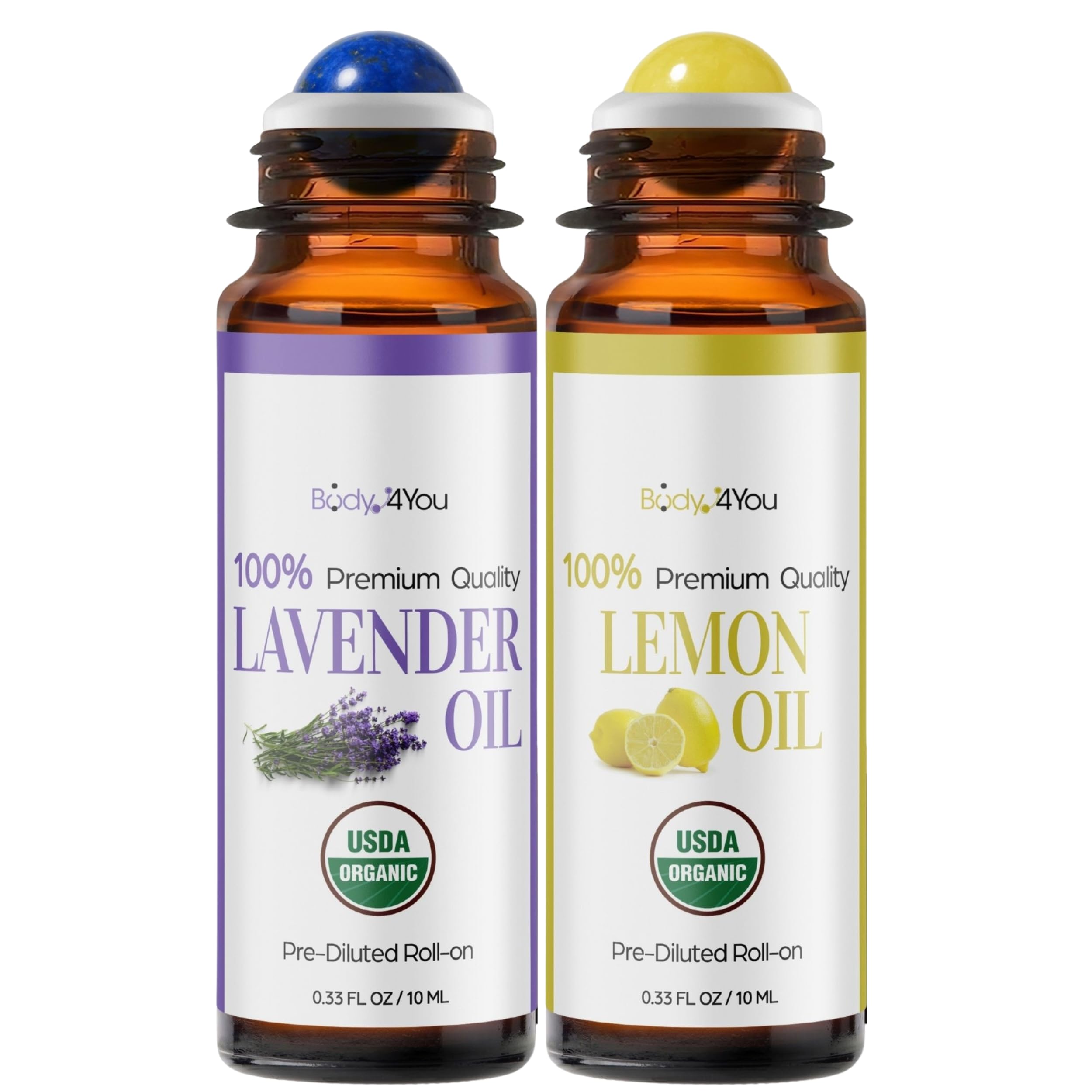 Meet the simplest way to wear essential oils every day: a pocket roll on filled with aromatic botanicals, comfortably diluted in lightweight MCT coconut oil. The clear, fast absorbing base cushions skin and lets scent sit close, never heavy. Glide the roller across wrists, temples, neck, or behind ears for a quiet, personal aura that supports the moment, whether you want to settle before bed, reset between meetings, or add a gentle finish after skincare. Each blend begins with the same dependable foundation. MCT oil is neutral in scent, spreads evenly, and sinks in quickly, so the focus stays on the botanicals. Citrus feels bright on busy mornings. Florals read soft and serene for winding down. Woods and resins bring a grounded, cozy mood. Mints and herbs feel crisp after a workout or a long day of travel. Wear a single note for clarity, pair two for depth, or rotate through the week to match your routine. Application stays simple. Roll a small amount onto clean skin and breathe normally, then reapply as needed without a greasy afterfeel. Use during meditation, breathwork, yoga, or journaling to mark the start of a practice. Keep one on your desk for a midafternoon refresh. Tuck one in your gym bag for a post shower finish. Slip one into a carry on to help create a familiar sense of home wherever you land. Care is straightforward. Patch test before first use. For external use only. Avoid the eye area. Stop use if irritation occurs. Keep closed, upright, and away from heat or direct sun. Because all blends share the same MCT base, they layer well with fragrance free skincare and will not compete with your favorite body lotion or hand cream, leaving a clean, soft veil of botanicals that fits easily into daily life.QUALITY AND STANDARDS: USDA Organic ingredients, vegan, cruelty free, USA bottled, small batch filled, safety sealed, no parabens or mineral oil, no dyes or fragrance enhancers, contains coconut derivative. SIMPLE APPLICATION: Roll on wrists, temples, neck, and pulse points, use before bed or between tasks, quick glide with no greasy residue, travel ready size for desk, bag, or bedside. LEMON ROLL ON: Lemon Citrus limon in organic MCT coconut oil, yellow jade stone roller, aroma supports daytime uplift and quick wrist and neck refresh. LAVENDER ROLL ON: Lavender Lavandula angustifolia in organic MCT coconut oil, amethyst stone roller, aroma supports evening wind down and pulse point care. PREMIUM OIL DUO WITH STONE ROLLERS: Two roll ons with USDA Organic 100 pure lavender and lemon in organic MCT coconut oil, amethyst and yellow jade rollers, amber glass bottles, 10 ml each.