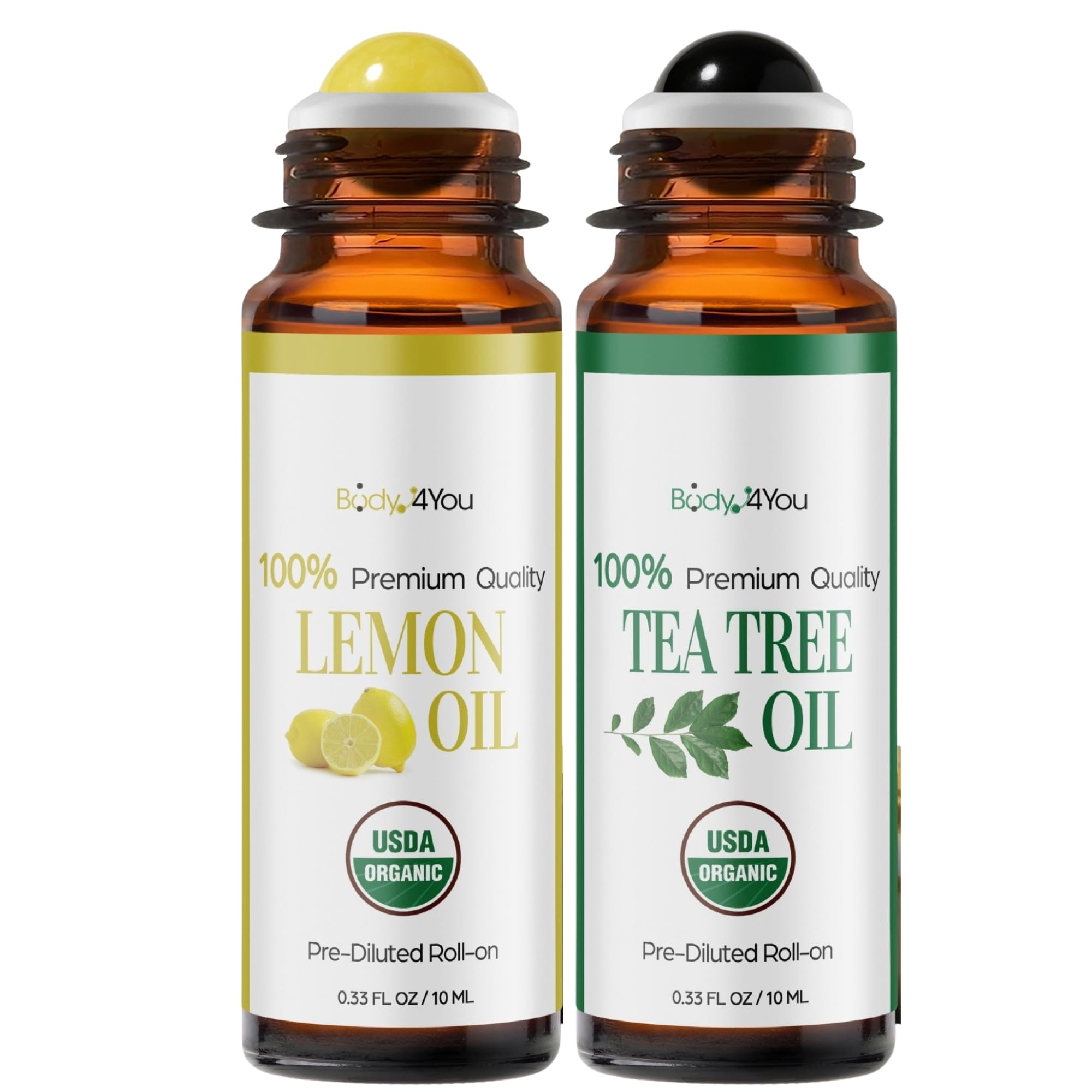 Meet the simplest way to wear essential oils every day: a pocket roll on filled with aromatic botanicals, comfortably diluted in lightweight MCT coconut oil. The clear, fast absorbing base cushions skin and lets scent sit close, never heavy. Glide the roller across wrists, temples, neck, or behind ears for a quiet, personal aura that supports the moment, whether you want to settle before bed, reset between meetings, or add a gentle finish after skincare. Each blend begins with the same dependable foundation. MCT oil is neutral in scent, spreads evenly, and sinks in quickly, so the focus stays on the botanicals. Citrus feels bright on busy mornings. Florals read soft and serene for winding down. Woods and resins bring a grounded, cozy mood. Mints and herbs feel crisp after a workout or a long day of travel. Wear a single note for clarity, pair two for depth, or rotate through the week to match your routine. Application stays simple. Roll a small amount onto clean skin and breathe normally, then reapply as needed without a greasy afterfeel. Use during meditation, breathwork, yoga, or journaling to mark the start of a practice. Keep one on your desk for a midafternoon refresh. Tuck one in your gym bag for a post shower finish. Slip one into a carry on to help create a familiar sense of home wherever you land. Care is straightforward. Patch test before first use. For external use only. Avoid the eye area. Stop use if irritation occurs. Keep closed, upright, and away from heat or direct sun. Because all blends share the same MCT base, they layer well with fragrance free skincare and will not compete with your favorite body lotion or hand cream, leaving a clean, soft veil of botanicals that fits easily into daily life.CERTIFIED QUALITY USA BOTTLED: USDA Organic ingredients, vegan and cruelty free, USA bottled in a certified facility, small batch filled and safety sealed, no parabens or mineral oil, no dyes or fragrance enhancers, contains coconut derivative. SIMPLE APPLICATION: Roll on wrists neck and pulse points, trace thin lines on targeted areas, reapply as needed without buildup, keep at desk gym bag or travel kit. TEA TREE TARGETED CARE: Fresh herbal note supports clean looking skin on spots cuticles feet and scalp areas, light base supports focused application with quick dry feel. LEMON DAYTIME UPLIFT: Bright citrus aroma for wrist and neck reset, soft glide refreshes cuticles and dry areas, fast absorbing carrier leaves no greasy residue. PREMIUM OIL DUO w STONE ROLLERS: USDA Organic Certified 100 pure lemon Citrus limon and tea tree Melaleuca alternifolia in organic MCT coconut oil, yellow jade and black obsidian rollers, amber glass bottles, travel size 10 ml each.
