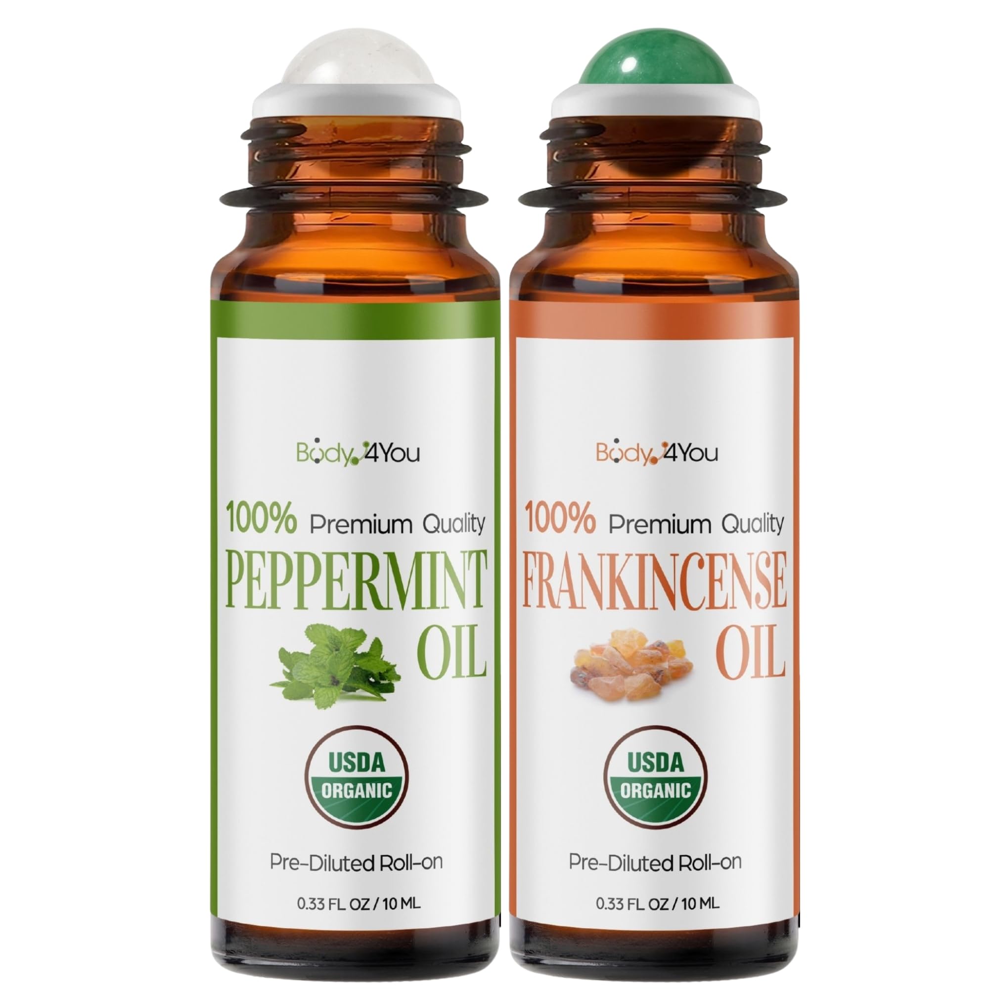 Meet the simplest way to wear essential oils every day: a pocket roll on filled with aromatic botanicals, comfortably diluted in lightweight MCT coconut oil. The clear, fast absorbing base cushions skin and lets scent sit close, never heavy. Glide the roller across wrists, temples, neck, or behind ears for a quiet, personal aura that supports the moment, whether you want to settle before bed, reset between meetings, or add a gentle finish after skincare. Each blend begins with the same dependable foundation. MCT oil is neutral in scent, spreads evenly, and sinks in quickly, so the focus stays on the botanicals. Citrus feels bright on busy mornings. Florals read soft and serene for winding down. Woods and resins bring a grounded, cozy mood. Mints and herbs feel crisp after a workout or a long day of travel. Wear a single note for clarity, pair two for depth, or rotate through the week to match your routine. Application stays simple. Roll a small amount onto clean skin and breathe normally, then reapply as needed without a greasy afterfeel. Use during meditation, breathwork, yoga, or journaling to mark the start of a practice. Keep one on your desk for a midafternoon refresh. Tuck one in your gym bag for a post shower finish. Slip one into a carry on to help create a familiar sense of home wherever you land. Care is straightforward. Patch test before first use. For external use only. Avoid the eye area. Stop use if irritation occurs. Keep closed, upright, and away from heat or direct sun. Because all blends share the same MCT base, they layer well with fragrance free skincare and will not compete with your favorite body lotion or hand cream, leaving a clean, soft veil of botanicals that fits easily into daily life.CERTIFIED QUALITY USA BOTTLED: USDA Organic ingredients, vegan and cruelty free, USA bottled in a certified facility, small batch filled and safety sealed with traceable sourcing and quality checks no parabens or mineral oil, no dyes or fragrance enhancers contains coconut derivative as carrier. SIMPLE APPLICATION ROUTINE: Roll a thin line on clean skin across wrists, temples, neck, and other pulse points, trace small areas that need attention, let absorb before layering other products, reapply as needed without buildup keep bottles at desk, bedside drawer, travel kit, or gym bag. FRANKINCENSE PULSE POINT CARE: Frankincense Boswellia carterii pairs a warm resin aroma with pulse point care on wrists, temples, and neck, supports the look of skin tone on dry patches, and layers cleanly after shower routines lightweight carrier sinks in quickly to keep skin comfortable. PEPPERMINT COOLING FOCUS: Peppermint Mentha piperita provides a cooling glide on temples, neck, and tension areas while a crisp mint note supports a clear focused mindset during study, work, or commute the fast absorbing MCT base leaves no greasy residue for thin layers and quick reapplication. PREMIUM OIL DUO w STONE ROLLERS: Two roll ons with USDA Organic 100 pure peppermint and frankincense in organic MCT coconut oil, clear quartz roller for peppermint and green aventurine roller for frankincense, amber glass bottles for controlled glide, compact 10 ml each for daily carry.