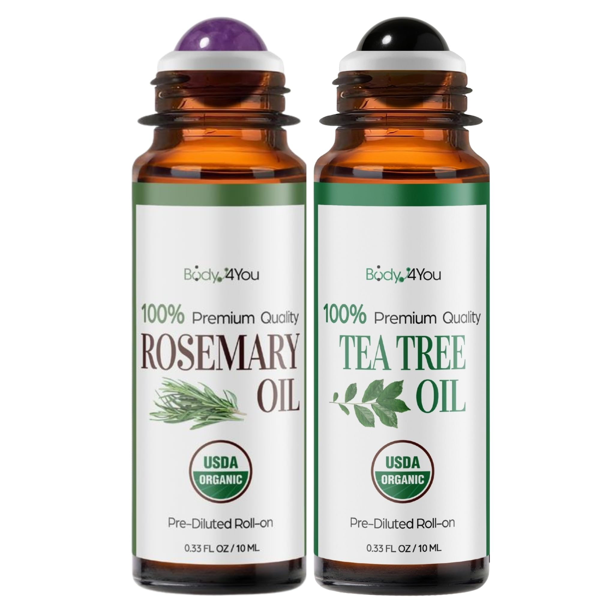 Meet the simplest way to wear essential oils every day: a pocket roll on filled with aromatic botanicals, comfortably diluted in lightweight MCT coconut oil. The clear, fast absorbing base cushions skin and lets scent sit close, never heavy. Glide the roller across wrists, temples, neck, or behind ears for a quiet, personal aura that supports the moment, whether you want to settle before bed, reset between meetings, or add a gentle finish after skincare. Each blend begins with the same dependable foundation. MCT oil is neutral in scent, spreads evenly, and sinks in quickly, so the focus stays on the botanicals. Citrus feels bright on busy mornings. Florals read soft and serene for winding down. Woods and resins bring a grounded, cozy mood. Mints and herbs feel crisp after a workout or a long day of travel. Wear a single note for clarity, pair two for depth, or rotate through the week to match your routine. Application stays simple. Roll a small amount onto clean skin and breathe normally, then reapply as needed without a greasy afterfeel. Use during meditation, breathwork, yoga, or journaling to mark the start of a practice. Keep one on your desk for a midafternoon refresh. Tuck one in your gym bag for a post shower finish. Slip one into a carry on to help create a familiar sense of home wherever you land. Care is straightforward. Patch test before first use. For external use only. Avoid the eye area. Stop use if irritation occurs. Keep closed, upright, and away from heat or direct sun. Because all blends share the same MCT base, they layer well with fragrance free skincare and will not compete with your favorite body lotion or hand cream, leaving a clean, soft veil of botanicals that fits easily into daily life.QUALITY AND STANDARDS: USDA Organic ingredients, vegan and cruelty free, USA bottled in a certified facility, small batch filled and safety sealed with traceable sourcing and quality checks, no parabens or mineral oil, no dyes or fragrance enhancers, contains coconut derivative as the carrier base. CLEAN BASE MATERIALS AND FORMAT: Lightweight organic MCT coconut oil spreads evenly and sinks in quickly for controlled layers, stone rollerballs deliver a consistent glide, amber glass shields the blend from light, compact bottles store upright in bag desk drawer shower caddy or gym kit for easy access. SIMPLE APPLICATION ROUTINE: Trace a thin line on wrists temples neck and pulse points for personal aroma, roll along hairline and roots for massage, mark small areas on spots cuticles or feet as needed, let absorb before layering products, reapply through the day without buildup for a fresh comfortable feel. TARGETED SCALP AND SPOT CARE: Rosemary complements scalp massage along hairline and roots and supports a clear focused mindset during tasks or study, while tea tree helps maintain clean looking skin on targeted spots cuticles feet and along the scalp line, designed for quick layered use with no greasy residue. PREMIUM OIL DUO WITH STONE ROLLERS: Two roll ons with USDA Organic 100 pure rosemary and tea tree pre diluted in organic MCT coconut oil for a smooth fast absorbing glide, paired with natural amethyst and black obsidian stone rollers in amber glass bottles, compact 10 ml each for daily carry and precise use.