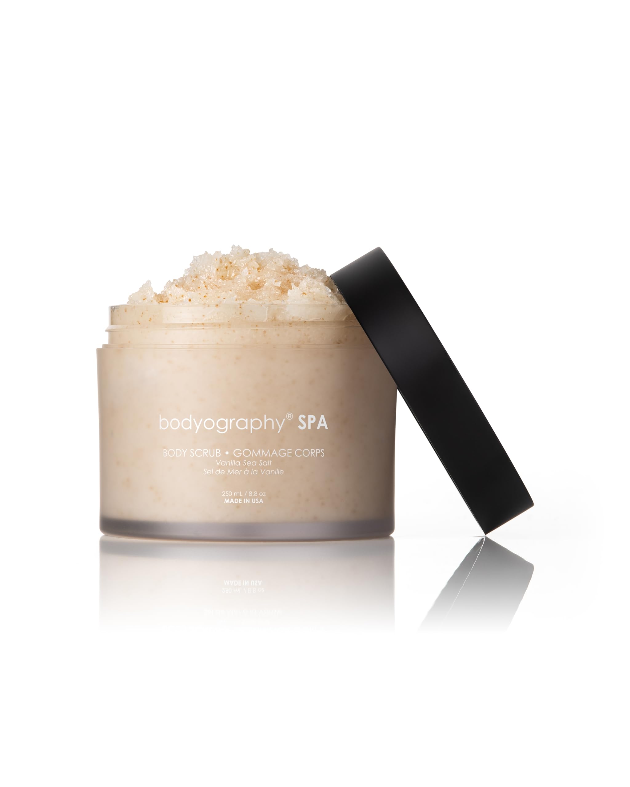 Reveal your skin's natural glow with the Bodyography Spa Body Scrub in Vanilla Sea Salt. This detoxifying sugar and salt exfoliator gently polishes away dullness while infusing the skin with hydrating botanical oils. With regular use, it helps improve microcirculation and overall skin tone, leaving your body soft, smooth, and radiant. The indulgent vanilla sea salt fragrance adds a spa-like touch to your skincare routine, transforming each exfoliation into a moment of relaxation. Clean, vegan, and free from harsh chemicals, this body scrub is the perfect way to refresh and renew your skin.How to Use for Best Results: Massage onto damp skin in circular motions two to three times per week for optimal results. Focus on rough areas such as elbows, knees, and heels. Rinse thoroughly and pat dry to reveal refreshed, glowing skin. Ideal for prepping the skin before shaving or self-tanning. Clean and Conscious Skincare: This body scrub is vegan, gluten-free, and free from parabens, making it safe for sensitive skin types. Its clean formula respects both your body and the environment, offering a responsible choice for conscious beauty lovers. Subtle Vanilla Sea Salt Fragrance: Immerse your senses in the soothing scent of Vanilla Sea Salt, a signature fragrance that adds a layer of relaxation to your skincare ritual. The soft, sensual aroma lingers delicately on the skin, elevating your bath or shower experience. Infused with Botanical Oil Blend: Formulated with a rejuvenating blend of botanical oils—including Grape Seed, Rosemary, Sweet Almond, Avocado, and Sage—this scrub nourishes and protects the skin while exfoliating. These oils hydrate and condition the skin, leaving it silky smooth without greasy residue. Gentle Exfoliation for Radiant Skin: The Bodyography Spa Body Scrub offers a luxurious exfoliating experience with a nourishing blend of sugar and sea salt that gently buffs away dead skin cells. This dual-action exfoliator smooths and resurfaces skin texture, visibly enhancing tone and radiance. Regular use helps boost microcirculation, promoting healthier, more vibrant skin.