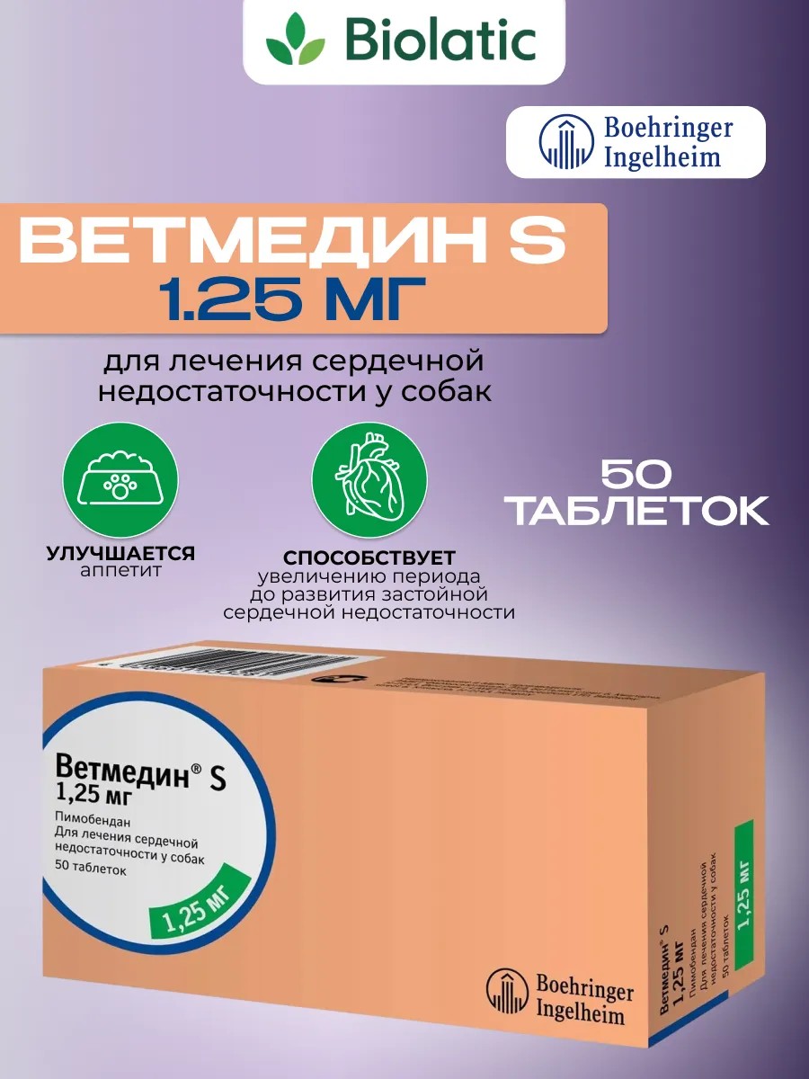 Ветмедин S 1.25 мг таблетки для лечения сердечной недостаточности у собак, 50 таб