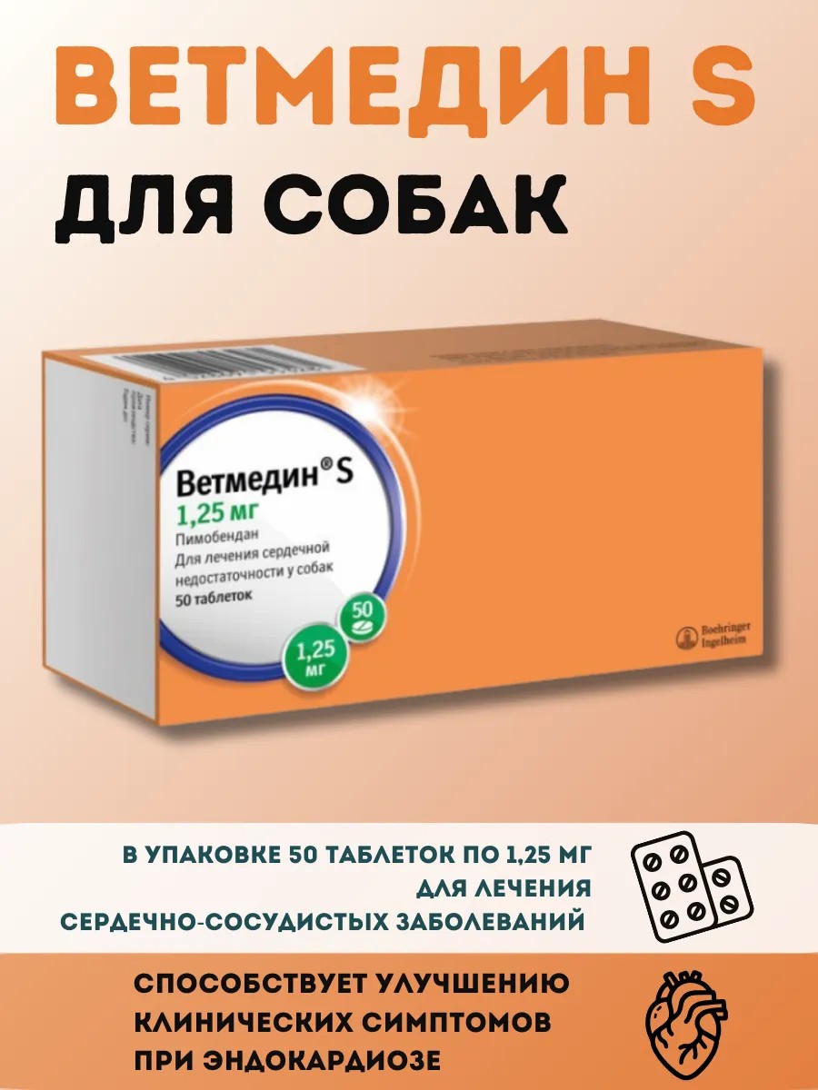 Boehringer Ingelheim Ветмедин S, для собак, 1,25 мг, 50шт
