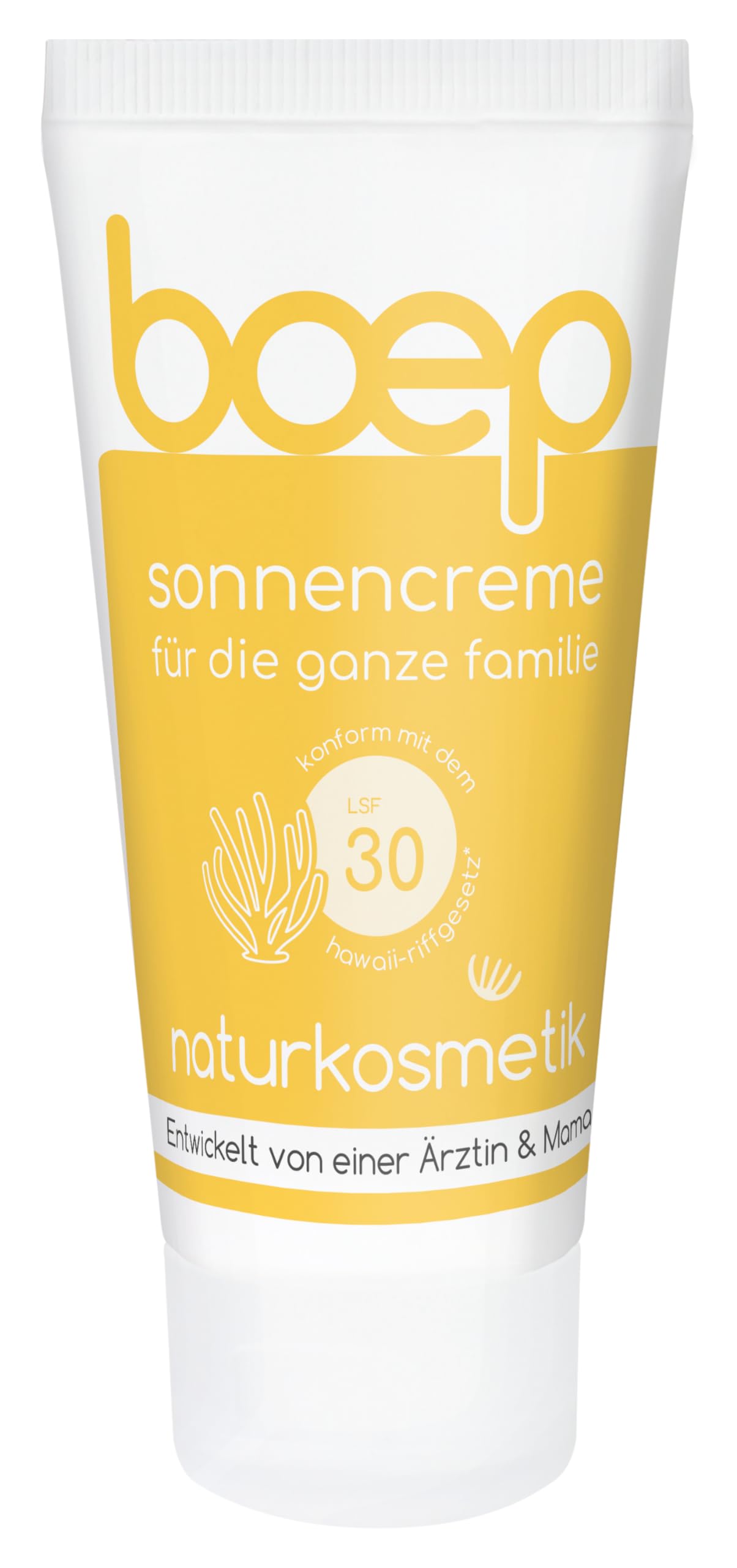 Our natural family sunscreen with SPF 30 is suitable for babies, children, and adults. Thanks to its gentle formula, it can also be used safely during pregnancy and breastfeeding. With its light, summery fragrance, it's the ideal protection for the body, but you can also use it on your face. Zinc has a water-repellent effect, but you and your children should rehydrate regularly with this natural sunscreen. The zinc oxide UV filter provides immediate protection without any waiting period – so your children can apply it right away in the water. Zinc sunscreen is therefore the only natural sunscreen you need to take with you on vacation. Despite its light summery scent, this mineral zinc sunscreen is suitable for sensitive skin, whether on the face or body. A helpful tip: apply a small amount of our natural cosmetic sunscreen to your scalp for added sun protection. This sunscreen is free of harmful plasticizers and DHHB. DHHB-free sunscreen SPF 30. INGREDIENTS Aqua, Zinc Oxide, Caprylic Capric Triglyceride, Dicaprylyl Ether, Glycerin Stearate, Cetearyl Alcohol, Campestris Aleurites Fordi Oil Copolymer, Polyhydroxystearic Acid, Sorbitan Caprylate, Silybum Marianum Ethyl Ester, Cocos Nucifera Oil , Tetracopherol, Ponytail Pinnata Seed Extract, Sodium Stearoyl Lactylate, Sodium Polyphosphate, Xanthan Gum, Parfum , Benzyl Alcohol, Limonene Raw materials from certified organic farming Natural fragrance composition SAFETY WARNING Shake before use. Before sun exposure, generously apply Boep sunscreen to the face and body. Too little product reduces protection. Reapply several times a day to maintain sun protection, especially if you sweat or swim. Excessive sun exposure is dangerous, so even when using sunscreen, don't stay in the sun too long. Avoid the intense midday sun and remember protective clothing for babies and young children. Even high SPF sunscreens don't offer complete protection against UV rays. See moreboep Crème solaire SPF30 Protection solaire minérale pour bébés, enfants et adultes Avec oxyde de zinc sans filtre UV chimique, sans phtalates et sans DHHB Cosmétique naturel végétalien en 40 ml (1er Pack)DESCRIPTION DU PRODUIT DESCRIPTION DU PRODUIT Notre crème solaire naturelle familiale avec SPF30 convient aux bébés, aux enfants et aux adultes. Grâce à sa formule douce, elle peut également être utilisée sans problème pendant la grossesse ou pendant l'allaitement. Avec son léger parfum estival, c'est la protection idéale pour le corps mais vous pouvez également l'utiliser pour le visage. Le zinc a un effet imperméable, mais vous devriez vous réhydrater régulièrement et vos enfants avec la crème solaire naturelle. Le filtre UV à l'oxyde de zinc assure une protection immédiate sans temps d'action – vos enfants peuvent ainsi immédiatement mettre de la crème dans l'eau. La crème solaire au zinc est donc la seule protection solaire naturelle que vous devez emporter avec vous en vacances. Malgré son léger parfum d'été, la protection solaire minérale zinc convient aux peaux sensibles, que ce soit sur le visage ou sur la peau sur le corps. Petit conseil : appliquez une dose de notre crème solaire cosmétique naturelle sur votre cuir chevelu pour assurer une protection solaire suffisante. Crème solaire sans plastifiants nocifs et sans DHHB. Crème solaire sans DHHB SPF 30. INGRÉDIENTS aqua, oxyde de zinc, triglycéride caprylique capric, dicaprylyl éther, stéarate de glycérine, alcool cétéarylique, campestris aleurites fordi oil copolymer, acide polyhydroxy-stéarique, sorbitan caprylate, silybum marianum ethyl ester,huile de cocos nucifera , Tcophérol, poney Extrait de graines de pinnata de gamia, stéaroyl lactylate de sodium, polyphosphate de sodium, gomme xanthane, parfum , alcool benzylien, limonène Matières premières issues de l'agriculture biologique contrôlée Composition parfumée naturelle AVERTISSEMENT DE SÉCURITÉ Agiter avant utilisation. Avant l'exposition au soleil, veuillez répartir généreusement la crème solaire boep sur le visage et le corps. Une quantité trop faible réduit la protection. Répéter l'application plusieurs fois par jour pour maintenir la protection contre la lumière, en particulier en cas de transpiration et après le bain. L'exposition excessive au soleil met en danger la santé, donc malgré l'utilisation de la crème solaire, ne pas rester au soleil trop longtemps. Évitez le soleil intense de midi et n'oubliez pas les vêtements de protection pour les bébés et les jeunes enfants. Même les facteurs de protection contre la lumière élevés n'offrent pas une protection complète contre les rayons UV. Voir plusSans adoucissant DHHB : en tant que cosmétique naturel certifié, notre protection solaire renonce à la fois aux plastifiants nocifs tels que les phtalates et les parabènes et peut donc être utilisée en toute confiance. Fabriqué en Allemagne : notre crème solaire boep SPF30 est fabriquée dans la magnifique Allgäu, en Allemagne. Cela nous permet d'économiser des chemins d'expédition inutiles. Nous utilisons des tubes recyclables et renonçons à d'autres emballages. Notre crème solaire est exempte de microplastiques et de filtres UV synthétiques. Tous ceux qui aiment la plongée, le surf, la plongée avec tuba et se baignent dans la mer ou le lac ou qui ont besoin d'une crème solaire pour ski. COSMÉTIQUE NATUREL CERTIFIÉE : en outre, notre sceau cosmétique naturel Cosmos Natural accorde une attention stricte à la qualité et au choix des ingrédients. La tolérance cutanée de notre protection solaire cosmétique naturelle a été testée dermatologiquement et a été évaluée avec le résultat « très bien ». UNE CRÈME POUR TOUS : notre crème solaire naturelle 30 convient aux bébés, aux enfants et aux adultes. La formule douce de la crème solaire offre une protection solaire fiable sans filtres synthétiques et chimiques, c'est pourquoi la crème solaire convient é