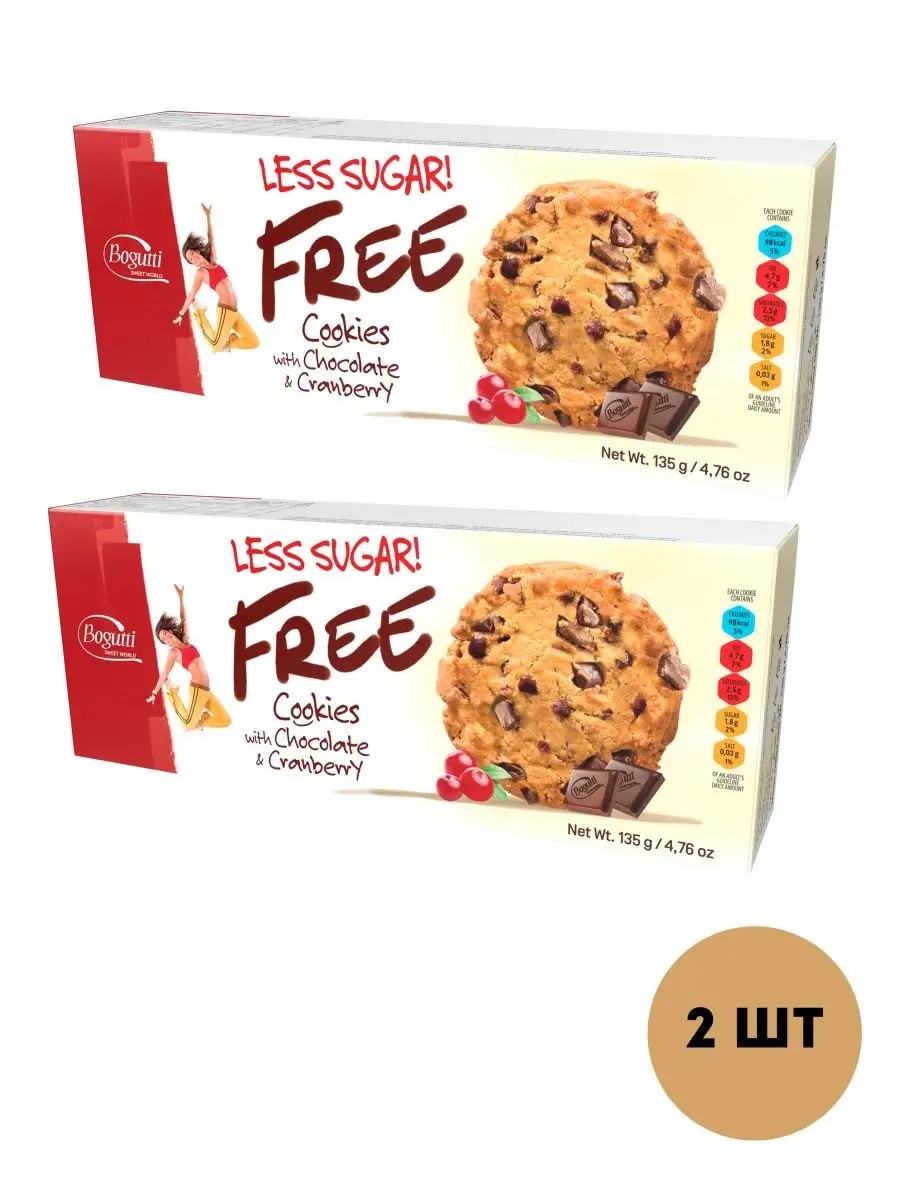 Bogutti Печенье с шоколадной крошкой и клюквой без сахара 2 шт