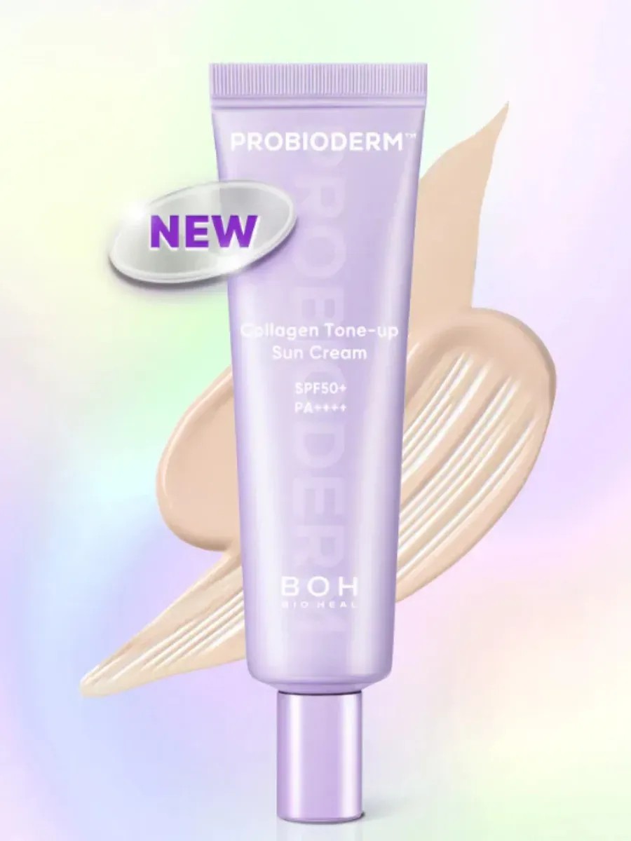 PROBIODERM Collagen Tone Up Sun Cream from BOH BIO HEAL is a high-protection sunscreen that not only protects your skin from UV rays but also gives it a healthy, radiant appearance.
