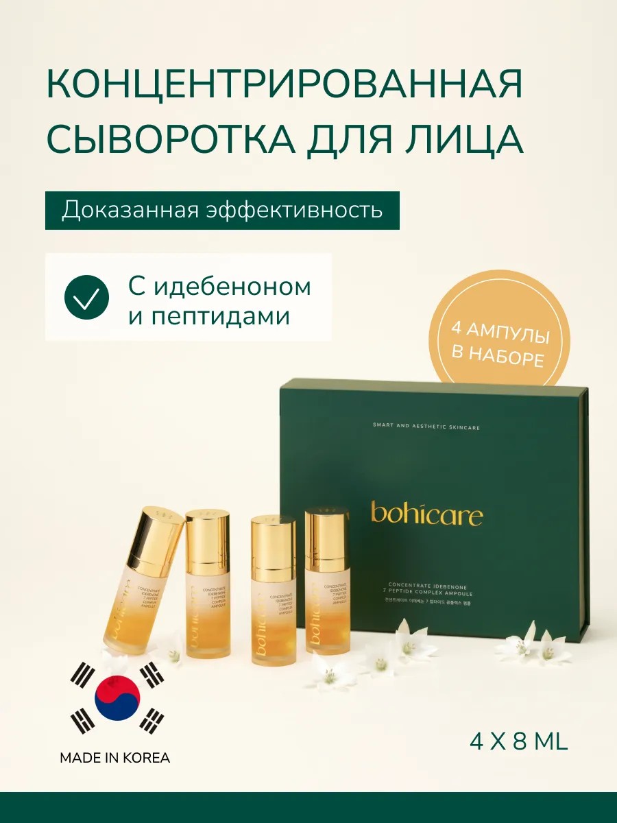 Корейская сыворотка для лица с идебеноном, пептидами, аденозином, ниацинамидом, D-фитогеном.