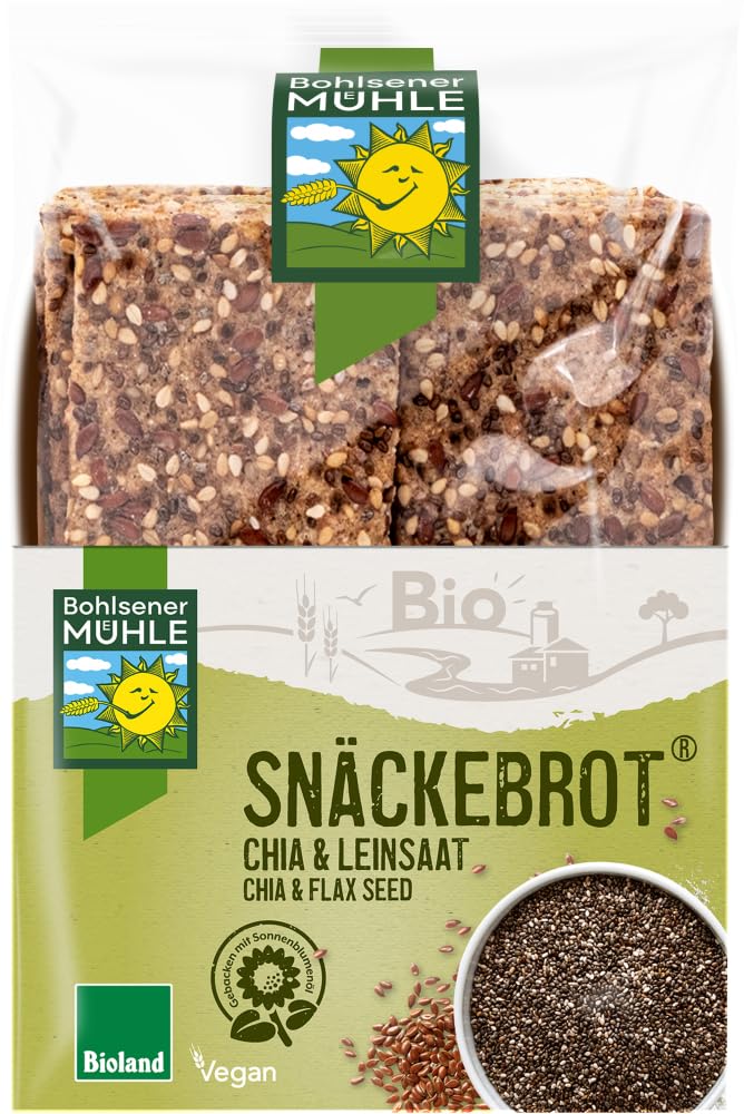 Taste: Storage and Use: Please store in a cool, dry, and closed place. Finish: Unlike bread, more than a snack and better than a treat – Snack bread tastes like breakfast, a snack in between, and a pleasant evening with loved ones. Available in various flavors. For enticing variations and ideal for dipping and pastry. Certifications EU Organic Label INGREDIENTS Sweetened wheat flour, wholemeal rye flour, sunflower oil, flax seeds 7 , sesame seeds, chia seeds (Salvia Hispanica) 5 , oat flakes, roasted malt, rice flour, sea salt, yeast. Spelt is a primordial wheat variety.Bohlsener Mühle Pain à collation bio et graines de lin (2 x 200 g) 2 x 200 grDESCRIPTION DU PRODUIT DESCRIPTION DU PRODUIT Goût : conservation et utilisation : veuillez conserver dans un endroit frais, sec et fermé. Finition : contrairement au pain, plus qu'une bourgeon et mieux qu'une collation – Le pain à collation a un goût pour le petit-déjeuner, comme collation entre les deux et lors d'une soirée agréable avec des proches. Disponible en différentes saveurs. Pour des variantes séduisantes et idéal pour saucir et coller. Certifications en label biologique de l'UE INGRÉDIENTS Râpe de blé édulcoré, farine complète de seigle, huile de tournesol, graines de lin 7 , sésame, graines de chia Salvia Hispanica 5 , flocons d'avoine, malt grillé, farine de riz, sel de mer, levure. L'épeautre est une espèce de blé primordial