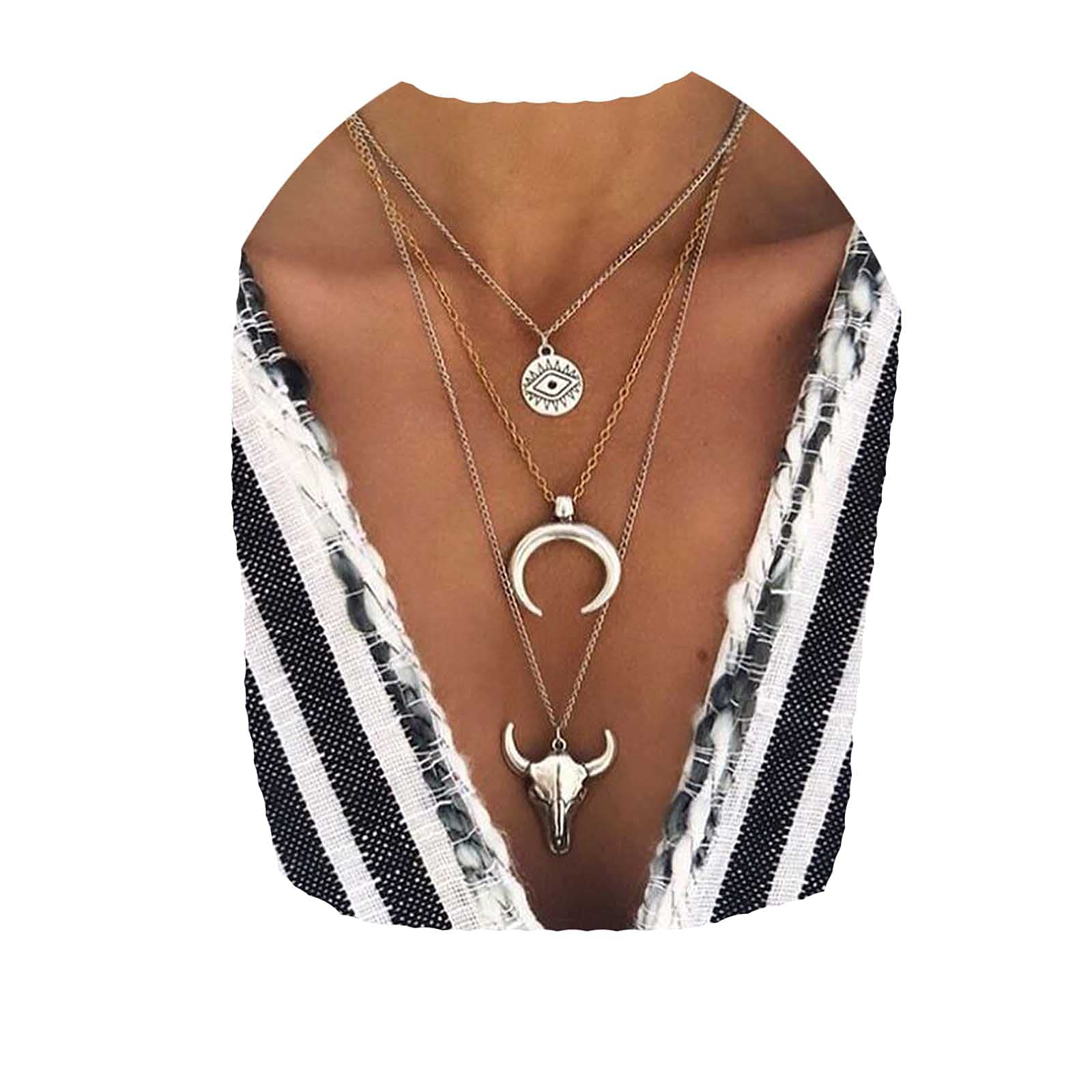 If there are any problems after receiving the product, please contact us in time and keep the RETURN & CHANGE label. We will do our best to provide you with an excellent shopping experience. Silver Multi layered necklace suit for daily wear or party wedding prom nightclub or any special occasions. Silver Crescent Necklace approach18inch,with 2 inch extension chain,adjustable for you. Vintage Horn Coin necklace chain with Real Images,keep color and not fade. Silver Compass Disc Necklace chain made of high quality alloy,easy to match clothes.