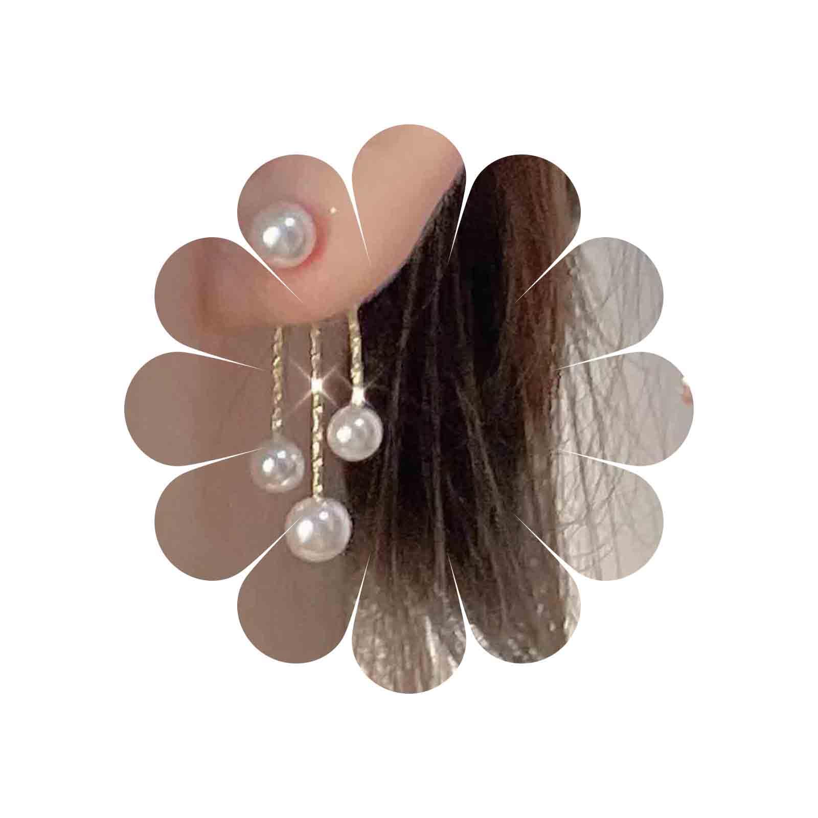 Boho Pearl Drop Dangle Earrings Gold Pearl Ear Jacket Earrings Vintage Dangle Pearl Tassel Earrings Double Way Front Back Earrings Jewelry for Women Gifts