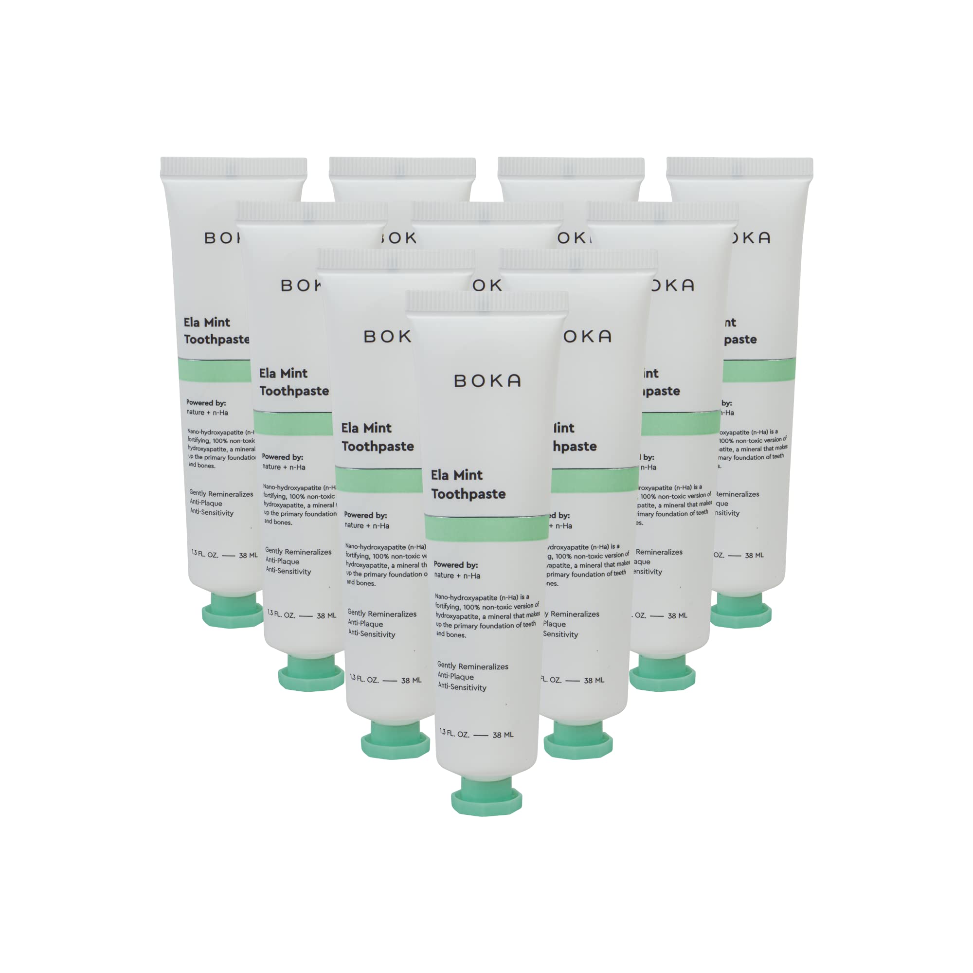 Boka Ela Mint Natural Toothpaste Nano-Hydroxyapatite for Remineralizing Sensitivity and Whitening Fluoride-Free Dentist Recommended for Kids and Adults Made in USA 1.3oz (Pack of 10)