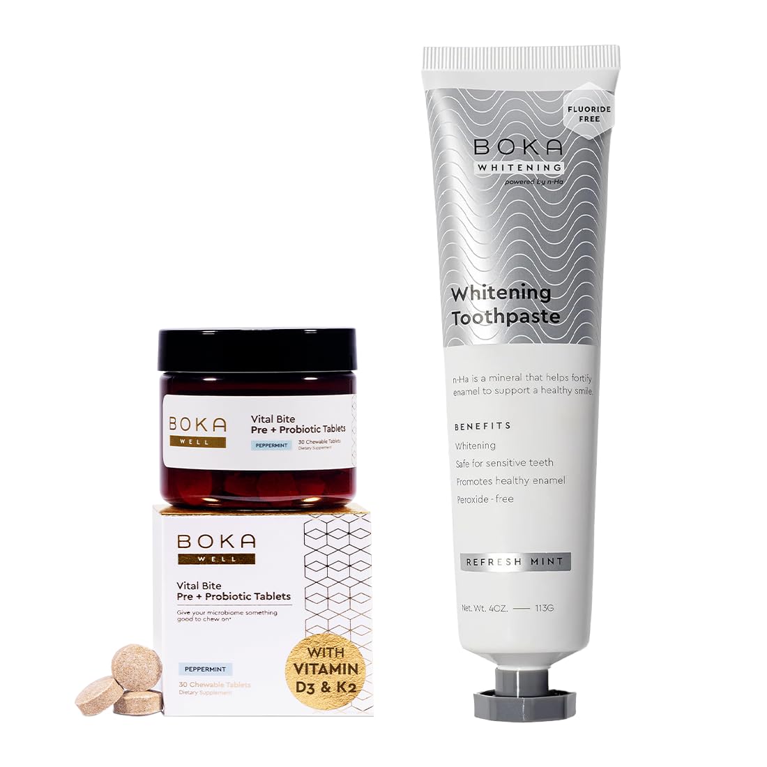 Boka Fluoride Free Toothpaste Nano Hydroxyapatite Whitening* - 4 Fl Oz 1Pk + Boka Vital Bite Oral Probiotics for Mouth Bad Breath - 30ct Dental Probiotics Tablets