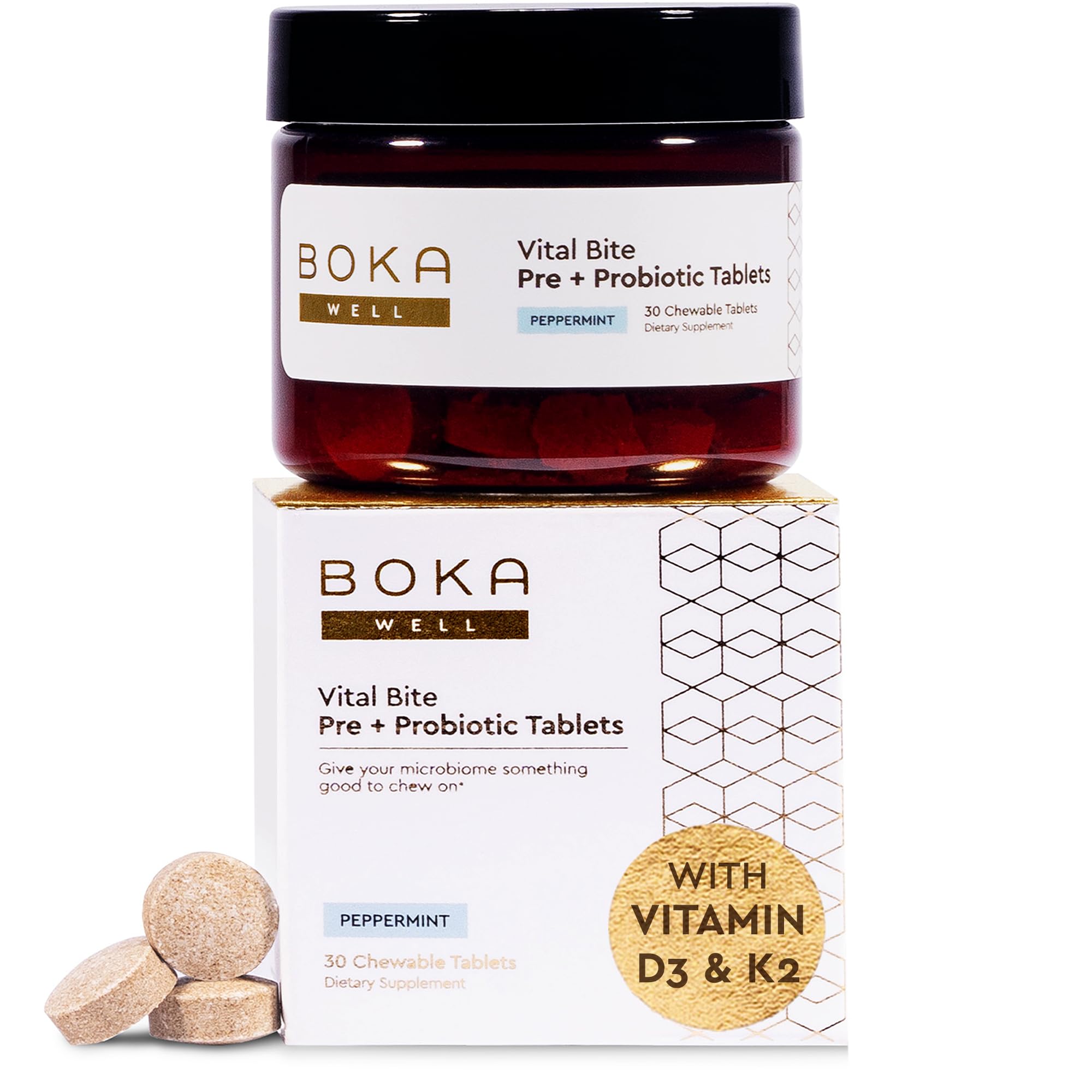 Boka Vital Bite Oral Pre + Probiotics - Sugar-Free Nut-Free Chewable Dental Probiotics for Teeth and Gums with BLIS K12 Vitamin D3 K2 for Men Women Freshens Breath - Peppermint 30 ct 30ct